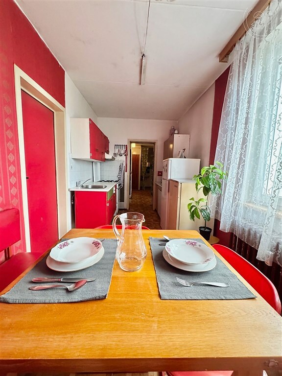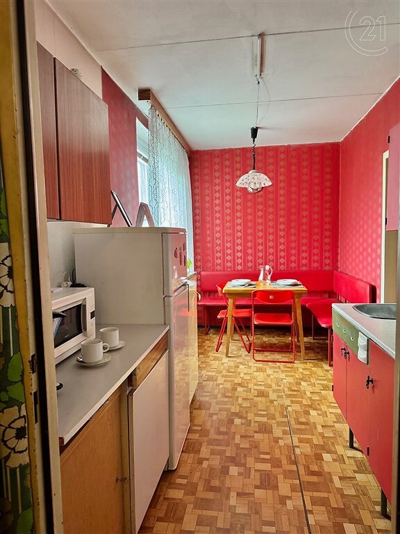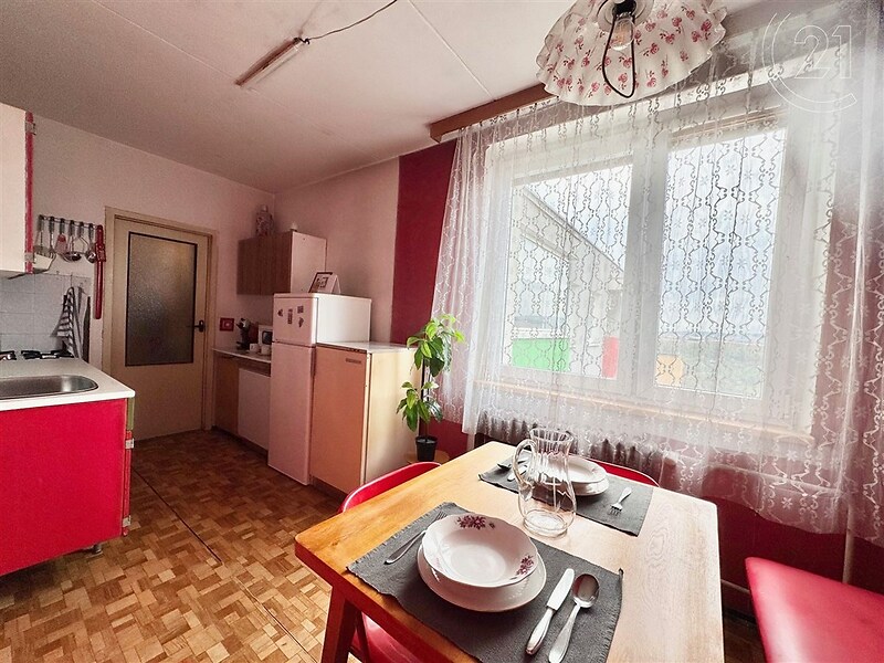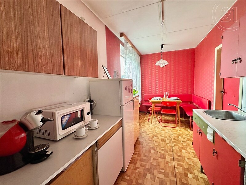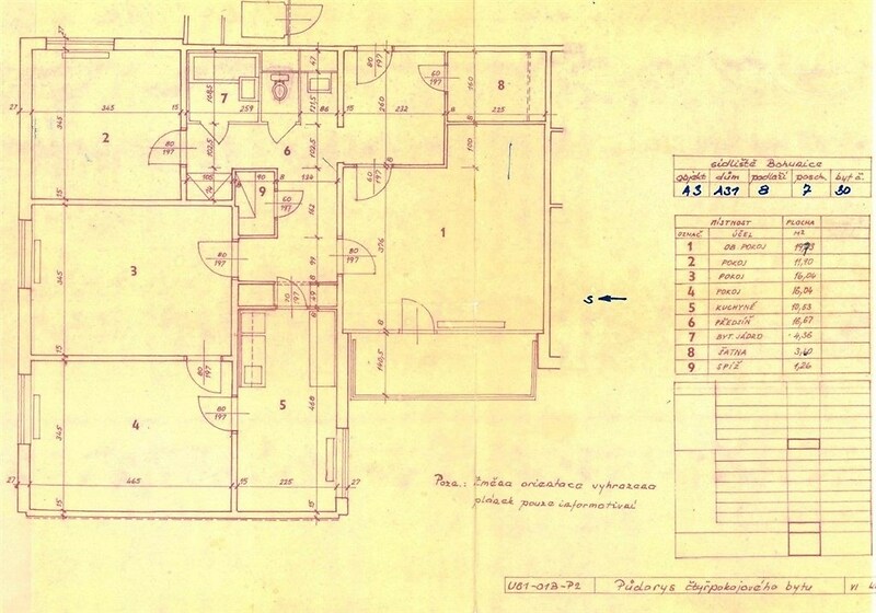 Nabízíme největší typ bytu OV 4+1, Brno – Bohunice, ul. Arménská, CP: 106 m2, 8.NP/8, výtah, panel, zasklená lodžie, sklep. Jedná se o pohodlný, prostorný, slunný byt v původním stavu, určený k rekonstrukci, s krásnými výhledy do krajiny. Obytná plocha bytu 101 m2. Velikosti místností: obývací pokoj 19,73 m2, pokoj 16,04 m2, pokoj 16,04 m2, pokoj 11,9 m2, kuchyně 10,53 m2, předsíň 16,67 m2, bytové jádro 4,36 m2, šatna 3,6 m2, spíž 1,26 m2. Lodžie 4,6 m2. Sklep 1,5 m2. Byt je vybaven kuchyňskou linkou, vestavnými skříněmi. Okna plastová, v pokojích parkety, jádro umakartové. V koupelně vana, WC zvlášť. Další umyvadlo (přívod vody a odpad) je umístěno v předsíni. Dům po rekonstrukci (nová fasáda se zateplením, izolace střechy, nový výtah, vstupní dveře, schránky). V dosahu veškerá občanská vybavenost a dopravní dostupnost. Doporučujeme k bydlení i jako investici.