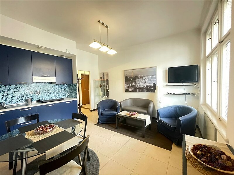Nabízíme pěkný zařízený byt 2+kk, přízemí, rozloha bytu 37,40 m2 Byt se sestává z obývacího pokoje s kuchyňským koutem, ložnice, koupelny a WC. Byt je zařízený. Nájemné: 16500,Kč + 1100,Kč domovní služby za osobu (vodné, stočné, úklid domu, výtah, osvětlení v domě atd.) + revize kotle 220 kc/mesic + elektřina a plyn na vlastní náklady. Volný ihnned. Možnost domácí zvíře. 25