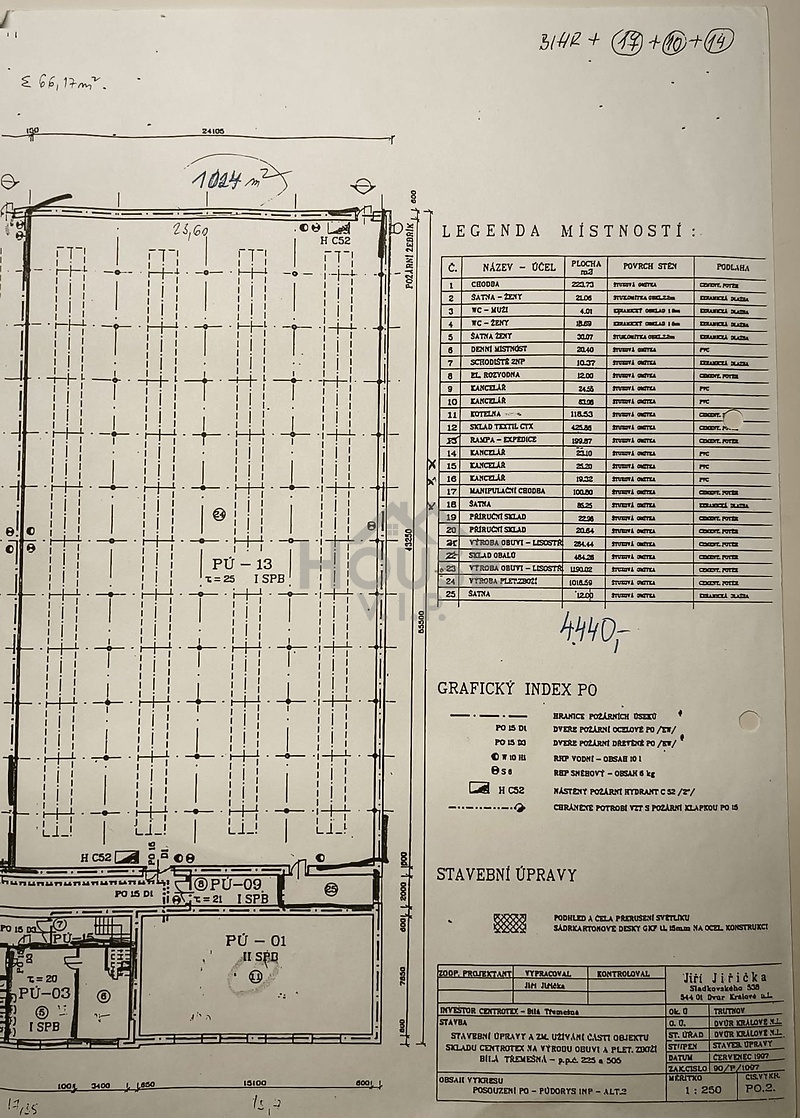 Nabízíme prodej jedinečné nemovitosti v lokalitě Bílá Třemešná. Tato rozsáhlá plocha výrobní haly o užitné ploše cca 4.440 m² (z toho 817 m² administrační část) na téměř rovinatém pozemku o celkové velikosti 12.667 m² je ideální pro investici či rozvoj. Zastavěná plocha a nádvoří je 5.374 m². Objekt postavený v roce 1931 je ve stavu před rekonstrukcí, což znamená obrovský potenciál pro nové majitele. V roce 1975 byly provedeny úpravy: zřízeno sociální zázemí pro zaměstnance, rozvod topení, vzduchotechniky a tlakového vzduchu. V objektu jsou výrobní plochy, expedice, manipulační chodba a sklady. Objekt je vytápěný z kotelny na tuhá paliva, která prošla renovací v roce 2005. pozemku jsou v současné době vedeny v územním plánu jako: VL – výroba a skladování – lehký průmysl Přípustné funkce: stavby pro výrobu a skladování s malou zátěží, jiné podnikatelské aktivity, jejichž provoz nebude mít negativní vliv na životní prostředí obce a jejichž případná ochranná pásma nezasáhnou stávající ani navrženou obytnou zástavbu sociální zařízení a šatny pro zaměstnance komunikace a parkovací plochy pro potřebu daného území plochy zeleně izolační a okrasné Podmíněně přípustné funkce: služební byt zařízení pro občerstvení a stravování zaměstnanců sběrné dvory pro třídění komunálního odpadu ostatní zde neuvedené aktivity lze povolit, pokud jsou v přímé souvislosti s přípustnými funkcemi, nejsou v rozporu s právními předpisy a správními rozhodnutími a pokud stavební úřad při vyhodnocení konkrétních podmínek neshledá vážné střety, které by umístění bránily Bílá Třemešná se nachází nedaleko Dvora Králové s napojením na D11. Tato nemovitost nabízí nekonečné možnosti pro využití a je skvělou investicí s ohromným potenciálem. Doporučujeme.