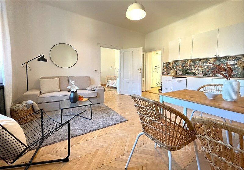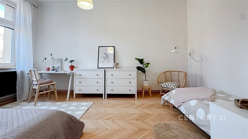 Nabízíme Vám k prodeji krásný světlý byt o dispozici 3+kk ve 2. patře cihlového domu v klidné části ulice Zemědělská v Brně – Černých Polích. Byt má vnitřní podlahovou plochu 60 m2 plus 6 m2 lodžie, ze které je nádherný výhled do zcela klidného vnitrobloku. Balkonové dveře a okno vedoucí na lodžii má venkovní žaluzie. Byt se skládá ze vstupní chodby, obývacího pokoje s kuchyňským koutem a dvou pokojů, přičemž pokoje jsou neprůchozí. V koupelně je vana, toaleta je samostatná. Součástí bytu je kuchyňská linka se spotřebiči (varnou deskou, troubou, myčkou a lednicí s mrazákem). K bytu náleží sklep o výměře 2 m2. Okna jsou nová dřevěná s trojskly včetně dřevěných parapetů. Podlahy tvoří parkety, v jednom z pokojů je koberec. V domě je možné využívat společnou zahradu. Vytápění bytu a ohřev teplé vody je zajištěn vlastním plynovým kotlem a novými radiátory. Vstup do domu je zajištěn čipem a opatřen videotelefonem. Dům je po revitalizaci – nově zbudované lodžie, zateplení, fasáda, nové sklepy a nové stupačky. Energetický štítek má hodnotu B. Jde o velice žádanou lokalitu s veškerou občanskou vybaveností, s rychlým přístupem do centra (zastávka tramvaje Zemědělská) a přitom v klidné části města. Je zde i možnost převzít hypotéku s velice výhodným úrokem. Prohlídky jsou možné po domluvě s makléřkou.