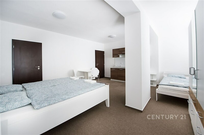 Nabízíme vám k prodeji řadový rodinný dům v Mostě Souši. Dům je po celkové rekonstrukci upravený na ubytovací zařízení. Je zateplený, má čtyři nadzemní podlaží. Výměra parcely je 279 m², vnitřní užitná plocha je 312 m². Nemovitost disponuje 26 lůžky. V prvním nadzemním podlaží jsou vybudovány dva apartmány (čtyřlůžkový a třílůžkový). Oba apartmány mají koupelnu a WC. V třílůžkovém apartmánu je i kuchyňská linka a má venkovní terasu s přístupem na zahradu. V druhém nadzemním podlaží jsou čtyři pokoje: dvoulůžkový, třílůžkový (tyto pokoje mají společné WC a koupelnu). Dále jsou tu dva třílůžkové pokoje s vlastní koupelnou i WC. Ve třetím nadzemním podlaží se nacházejí tři pokoje. Jeden je dvoulůžkový, zbývající dva jsou třílůžkové. Tyto pokoje mají společnou terasu. Na tomto patře je společná kuchyně a jsou tu dvě koupelny s WC. V přízemí se nachází garáž, tři místnosti, technická místnost a prádelna. Tato nemovitost má polohu na okraji Mostu, přímo naproti vjezdu do autodromu. Nedaleko je nádrž Matylda, která nabízí spoustu volnočasových aktivit, blízko je to i k mosteckému jezeru a na hrad Hněvín. Veškerá občanská vybavenost je v centru města, které je poblíž. Nemovitost je vhodná jako investice s velkým potenciálem, prodává se včetně vybavení. Zavolejte si pro další informace nebo si rovnou domluvte prohlídku. S případným financováním vám rádi pomůžeme.