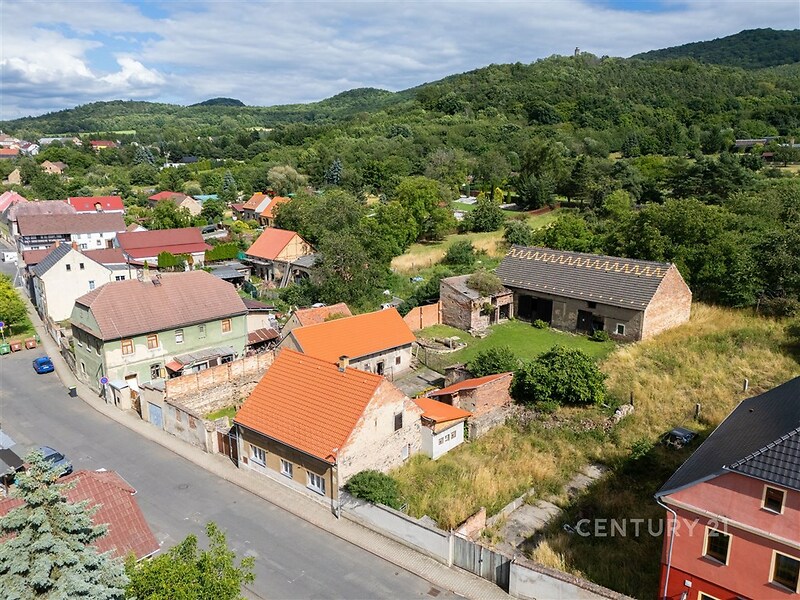 Nabízíme vám k prodeji rodinný dům v Kostomlatech u Milešovky o dispozici 4+1. Vnitřní užitná plocha je 119 m², výměra pozemku je 1 100 m². Na rozlehlém rovinatém pozemku se nacházejí ještě další budovy: samostatně stojící stodola a na dvoře je ještě jeden menší dům. U domu je dřevěný přístavek, přes který se dostaneme dovnitř. Delší prosvětlenou chodbou projdeme do koupelny, která je přímo naproti vchodu. Je zde vana, umyvadlo, komoda a bojler na vodu. Vedle je samostatné WC. Z chodby se dostaneme do místnosti, kde je lednice, dřez a elektrická trouba. Za závěsem je tu oddělený nový kotel na tuhá paliva. Dostáváme se do rozlehlé kuchyně, kde je kuchyňská linka, sporák, je zde jídelní kout s jídelním stolem a židlemi. Kuchyně je průchozí do obývacího pokoje, kde je sedací souprava a obývací stěna. Na tento pokoj navazuje místnost, která je průchozí ze tří stran. Odtud se dá projít do předposlední místnosti a tou je ložnice. Jedná se o světlou velkou místnost, která má vchody do dvou pokojů. Přes ložnici se dostaneme do posledního samostatného pokoje. Tato nemovitost má ideální polohu v malebné krajině na úpatí nejvyšší hory Českého Středohoří a poskytuje tak klid uprostřed zeleně. Dům lze upravit dle svých představ. Dojezdová vzdálenost do větších měst je též výborná, do Ústí nad Labem se dostanete za 20 minut, v Praze jste do hodiny. Jestli vás tato nabídka zaujala, neváhejte si zavolat o prohlídku. S případným financováním vám rádi pomůžeme.