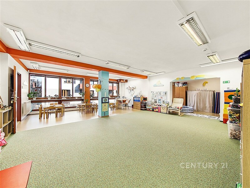 Nabízíme Vám k prodeji školku s kapacitou 27 dětí ve dvou třídách. Prostory jsou kolaudovány jako školní zařízení. Prostory o výměře 240m2 se nachází v přízemí objektu postaveného v roce 2005 v rezidenčním projektu Zahradní čtvrť na pražské Zbraslavi (cca 800 bytových jednotek). Prostory jsou rozděleny do dvou pater, v každém patře je velká centrální místnost, dětské toalety, toaleta pro personál, šatna a sklad. Dále je v prostorách přípravna jídla, technická místnost a kancelář. Každé patro lze provozovat samostatně (např. MŠ, ZŠ, dětský klub). Parkování je možné přímo před školkou na vyhrazených venkovních parkovacích stáních. Školka je v zástavbě bytů a rodinných domů.