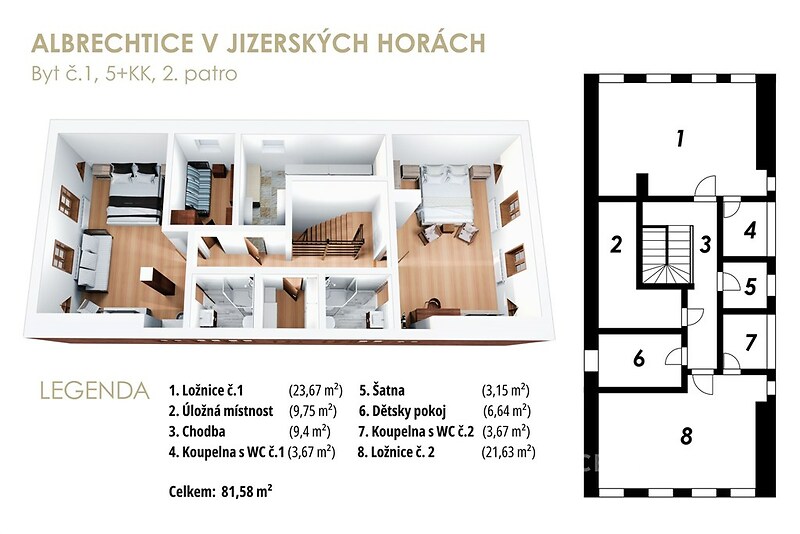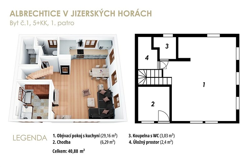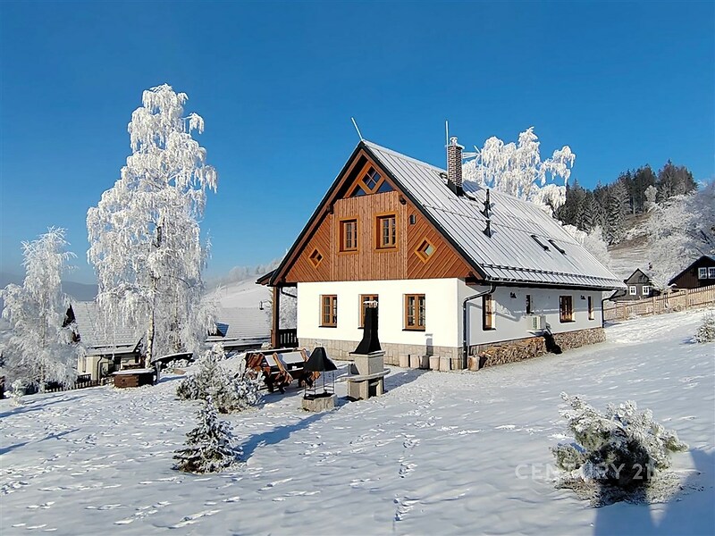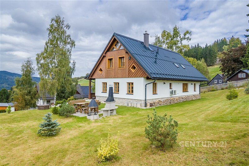 Nabízíme vám výjimečnou novostavbu z roku 2023 v jedné z nejkrásnějších částí Jizerských hor – v Albrechticích, přímo na úpatí Mariánské hory a na hraně ski areálu DETOA. Dům se nachází na pozemku o velikosti 1 605 m² a nabízí dechberoucí výhledy na Tanvaldský Špičák, rozhlednu Světlý vrch, Štěpánku i malebné Albrechtice s kostelem. Spojení horské architektury, špičkového zpracování a moderního komfortu z něj dělá nemovitost, která na trhu nemá obdoby. Dům je kolaudovaný v roce 2023 a je rozdělený na tři samostatné obytné jednotky: • hlavní jednotku o dispozici 4+kk (s možností rozšíření až na 6+kk) • dva samostatné apartmány 2+kk, každý s vlastním vstupem Celkově je v domě 5 koupelen a 3 plně vybavené kuchyně vyráběné na míru, včetně vestavěných spotřebičů a kávovarů na zrnkovou kávu. Dům byl postaven s důrazem na kvalitu a detail: • masivní modřínové podlahy (25 cm prkna) • okna a dveře z drásaného dřeva, trojskla, masivní kování • vysoké stropy (2,7–4,7 m), otevřený vzdušný prostor a pochozí půdní část s oknem • krb, klimatizace v ložnicích, vytápění plynem • kanalizace a vlastní studna hluboká 30 m • kompletní zateplení (vata 20 cm, krov foukaná pěna 25 cm) • žulová podezdívka ručně opracovaná Součástí domu je také: • dvougaráž • vinotéka • dílna • další 3 parkovací stání na vlastním oploceném pozemku Zahrada je navržena pro pohodový odpočinek: • zastřešená terasa s posezením • zahradní gril • příprava pro venkovní vířivku Dům se nachází v klidné části obce s celoročně udržovanou příjezdovou cestou. Okolí nabízí široké možnosti aktivního i pasivního odpočinku – lyžování, turistiku, cyklistiku, houbaření i relaxaci v čisté horské přírodě. Nemovitost je ideální jak pro vlastní celoroční bydlení, tak jako luxusní rekreační dům či investice s potenciálem výnosu z krátkodobých pronájmů. Pokud hledáte místo, kde se snoubí autenticita horského bydlení s komfortem moderního života, rádi vás touto jedinečnou nemovitostí osobně provedeme. S financováním vám rádi pomůžeme, nabízíme kompletní hypoteční servis.