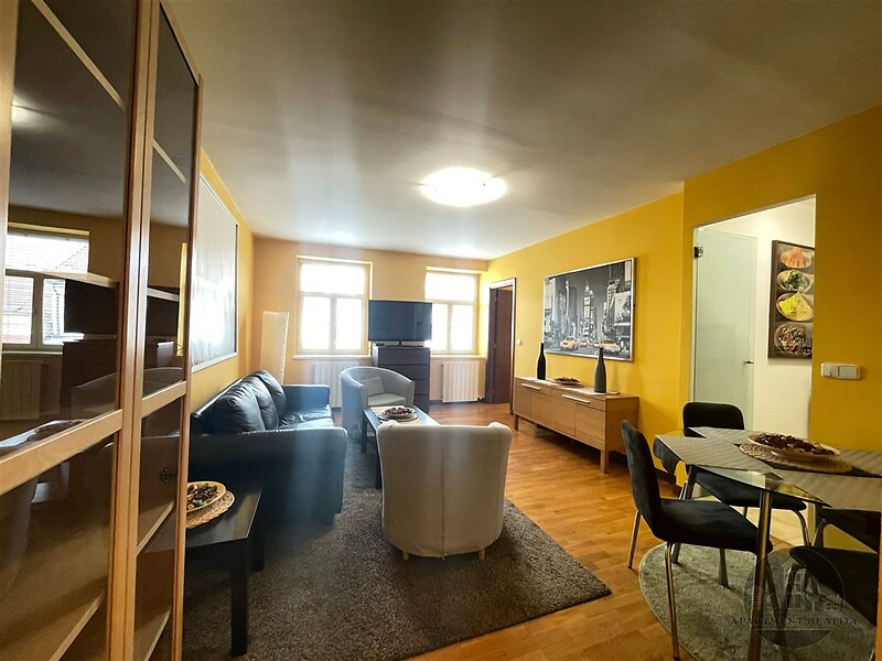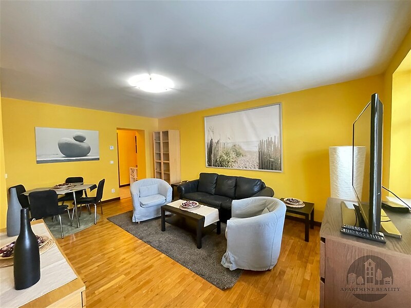 Nabízíme zařízený byt 3+KK ve 4. patře, o rozloze 73,92 m2. Byt se sestává z chodby, obývacího pokoje, kuchyně, 2 ložnic, samostatného WC, koupelny. Byt je zařízený. Nájemné: 26500,Kč + 1.500,Kč domovní služby za osobu (vodné, stočné, úklid domu, výtah, osvětlení v domě atd.) + revize kotle 220 Kč/měsíc + elektřina a plyn na vlastní náklady. Zvířata dovolena.