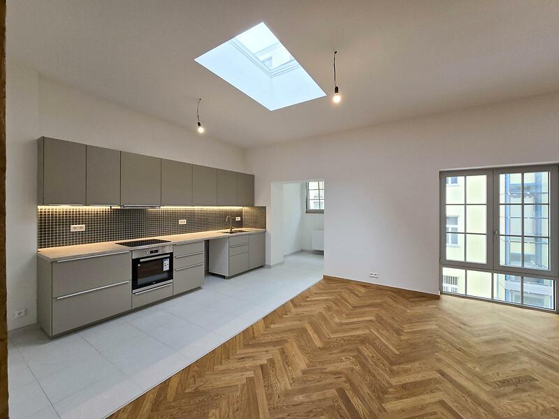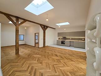 Nájemce neplatí provizi. K dlouhodobému pronájmu nabízíme unikátní prostor k bydlení se silnou příchutí industriálu , kolaudováno jako ateliér, není tedy možné přihlásit se k trvalému pobytu. Stavba je umístěna ve vnitrobloku domu v Křižíkově ulici, nedaleko vstupu do stejnojmenné stanice metra a jde o velmi zdařilou rekonstrukci bývalé dílny., vybudované ve 30. let 20. století Objekt má 3 podlaží, v každém po jedné samostatné bytové jednotce. Tento 2+kk 101m2 se střešními průsvity s dálkově ovládanými roletami. Byty majitel nabízí nezařízené nábytkem, v kuchyni je k dispozici kuchyňská linka s elektrickým sporákem a odsavačem par. Ostatní vybavení je čistě v režii nájemce. Na podlahách jsou velmi kvalitní parkety, v exponovaných částech dlažba. Pro ty, co Karlín neznají uvedu, že se jedná de facto o centrum Prahy a to jak kulturní, tak gurmánské. Nepřeberné množství restaurací a kaváren s různým zaměřením je Karlín oblíbeným místem návštěvníkům z celého města a to vskutku všech generací. Je ale třeba říci, že převažují hipsteři a. omladina. Naproti domu je supermarket Albert, za rohem Lidl a Billa. Před prohlídkou doporučuji virtuální prohlídku, která je k dispozici na některých inzertních serverech. V případě zájmu mohu zaslat samostatný link. S velkým potěšením vás zvu na návštěvu a nezávaznou prohlídku těchto výjimečných prostor. Nájem 30.000,- + 6.230,- služby (teplo, ohřev vody, vodné/stočné, úklid a osvětlení spol. prostor, odvoz odpadu) pro 1 osobu., každá další osoba + 2.680,-. Elektřina se přepisuje na nájemce (cca 2.000,-) Nájemní smlouva bude podepsána výhradně s fyzickou osobou. Kauce 2 nájmy včetně služeb.