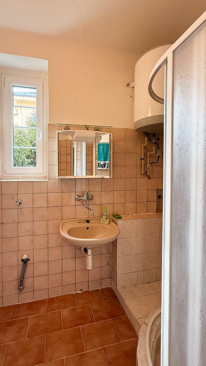 Nájemce neplatí provizi. Nabízíme k dlouhodobému pronájmu (cca 5 let) nezařízený byt v 1. NP rodinného domu v Pískové ulici v Praze 12 - Modřany. Dům se nachází v klidné rezidenční oblasti mezi dalšími rodinnými domy, tento pochází z počátku 20. století a je zasazen do příjemné zahrady, která je nájemci po dohodě k dispozici k užívání. Bytová jednotka je umístěna v 1. NP (zvýšené přízemí) a má výhled jak do zmíněné zahrady, tak do soukromého dvora. Prošel částečnou rekonstrukcí, kdy byly opraveny rozvody plynu, osazeny nové WAWky, prostory byly čistě vymalovány a vsazena plastová okna, která zajišťují minimální únik tepla a maximální izolaci zvukovou. Na podlahách je PVC a dlažba, v kuchyňské části je samostatné WC a koupelna se sprchovým koutem a elektrickým bojlerem se zásobníkem na teplou vodu. Byt nabízí základní, nicméně plně funkční standard. Nečekejte zde žádné designové, ani technologické výstřelky. Co však nabídnout může, je velká porce klidu, zahrada, spousta světla a fajn sousedy. Vítaní jsou majitelé vychovaných domácích zvířat, rodiny. 3 minuty od domu je zastávka tramvaje Čechova čtvrť, zastávka autobusu, do 5 minut pěší chůze je i úřad MČ Praha 12, na nákupy lze zajet do nedalekého Kuflandu, OC Novodvorská Plazza, v okolí jsou restaurace. Pro milovníky přírody je kousek Vltava, za domem Modřanská rokle. Nájem 19.000,- služby 600,-/osoba, + elektřina (cca 1.500,-) + plyn (cca 2.000,-). Provizi nájemce neplatí.
