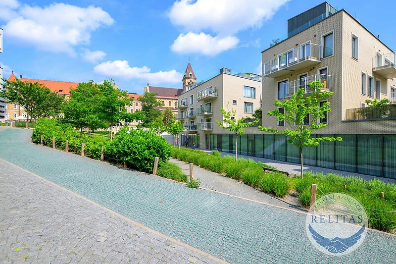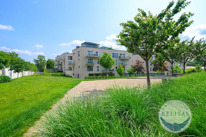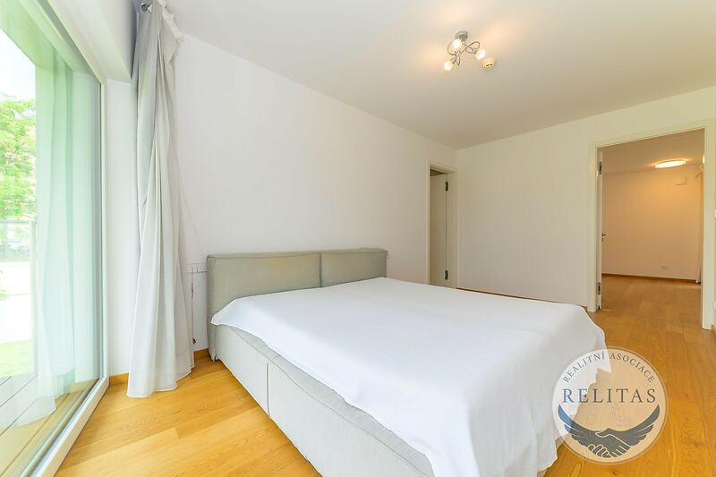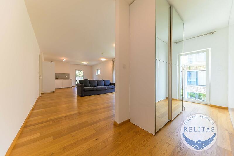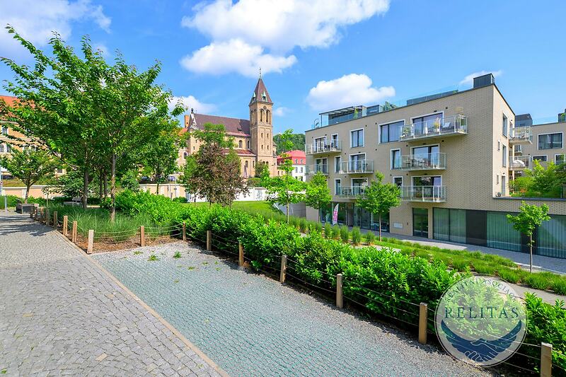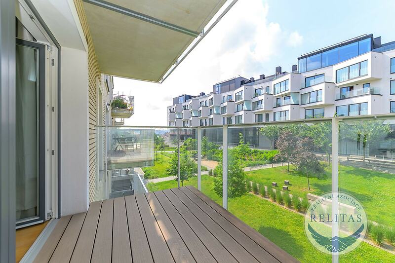 Náročnějšímu nájemci zprostředkuji byt 2+kk, 74, 8, m² + dva balkony v 3. podlaží v projektu Vitality Rezidence – nadstandardně řešené novostavbě z roku 2020, umístěné na Praze 5 – Smíchov, v Kobrově ulici, mezi parkem Sacré Coeur a klášterem svatého Gabriela. Byt se sestává z předsíně s šatní skříní, obývacího pokoje s kuchyňským koutem (42 m²), ložnice s dvoulůžkem (14 m²) a koupelny s vanou, toaletou a pračkou (vizte, prosím, půdorys). Z obývacího pokoje ústí jeden balkon s krásným výhledem na klášter (severozápad), druhý balkon z ložnice (jihozápad), obývací pokoj je orientován na severovýchod. V celém bytě je parketová podlaha. Rezidenti domu mohou zdarma využívat fitness, společenskou místnost s kuchyní či přednáškový sál. Budova má výborný průkaz energetické náročnosti "B - velmi úsporná".