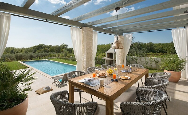 Nově postavená vila se nachází v malé istrijské vesnici Srebrnići, vedle levandulové farmy a jen krátkou procházku od nejslavnější observatoře v Chorvatsku ve Višnjanu (Zvjezdarnica Višnjan). Vila má čtyři ložnice, každou s vlastní koupelnou, a je zařízena v tradičním, industriálním stylu. Ložnice jsou umístěné separátně "v půlpatrech", takže je zde zabezpečený maximální klid. Součástí vily je prostorný obývací pokoj s plně vybavenou kuchyní a barovým pultem. Ve sklepě je umístěná herna pro dospělé i děti. Letní terasa nabízí velkorysé posezení s výhledem na bazén a je zde umístěna také letní kuchyň s grilem. V soukromé zahradě, která je zcela oplocená, najdete velký 50m² bazén se slanou vodou. Tento bazén je vyhřívaný a má také topnou fólii. Děti rádi využijí venkovní hřiště. Je zde parking pro 3 auta. Vilu lze využít celoročně díky topení (radiátory v ložnicích a koupelnách), podlahové topení v přízemí a herně. Vybavení vily zahrnuje kola, takže se můžete napojit přímo na cyklostezky z vily, nebo navštívit nedalekou vesnici Višnjan, kde najdete typické istrijské restaurace, pekárnu, obchod s potravinami nebo poštu. Moc doporučujeme návštěvu vinarije jako Radovan winery, Saint Hills Cantina nebo Vina Deklic, kde jsou některé umístěné přímo ve vinici. Pravidelně každý týden se můžete zúčastnit velmi zajímavé přednášky o vesmíru a vesmíru v nejslavnější observatoři Chorvatska, nebo se můžete vydat na levandulovou farmu a užít si krásný park s houpačkami s výhledem na levandulová pole. Nejbližší pláže jsou v Poreči, severně i jižně od centra, kde jich je víc jako 30km, a také doporučuji pláž na ostrově St. Nikola, který je dostupný vodním taxíkem z centra. Nejbližší pláž je cca 12km od vily. Dají se zde najít i klidné pláže nebo Beach bary s celodenní hudbou a lounge přímo v moři. Tato nemovitost je ideální jako dovolenková residence pro jednotlivce a jeho rodinu nebo jako investice s možností pronájmu. Doporučuji prohlídku!