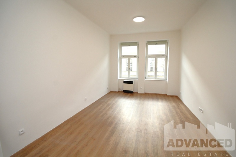 Pěkný a klidný zrekonstruovaný nezařízený byt 1+1, 32 m2 ve 2.patře historického domu s výtahem, minutu chůze od I. P. Pavlova nebo zastávky tramvaje Štěpánská. V bytě se nachází vstupní prostor s novým kuchyňským koutem (elektrická trouba, indukční deska dvou-vařič, vestavěná lednice s mrazákem a vestavěná mikrovlnná trouba), pokoj vedoucí do ulice, koupelna s umyvadlem, sprchovým koutem a připojením na pračku a s WC. Na podlahách je vinyl, v koupelně dlažba, okna jsou dřevěná s trojitým sklem, vytápění WAW, ohřev vody - elektrický bojler. V domě je Vodafone (bývalé UPC, kabel). Výtah je malý - max. pro 2 osoby