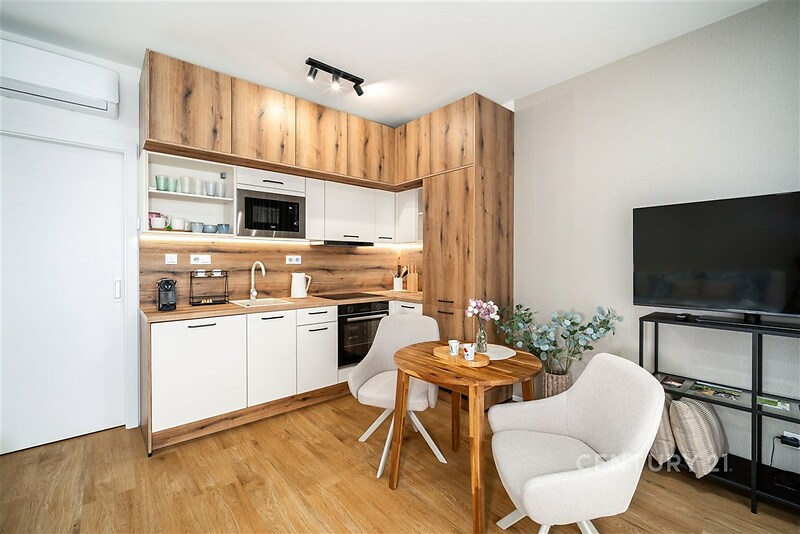 Pěkný a nový byt k pronájmu na Vás čeká na ulici Kotkova v nové Rezidenci Klement. Byt se nachází ve 4. NP s výtahem a s okny orientovanými na jihovýchod. Byt je PLNĚ zařízený tak, jak vidíte na fotografiích. Součástí bytu je kuchyňská linka na míru včetně elektrospotřebičů: lednice s mrazákem, varná deska, digestoř, trouba, myčka, mikrovlnná trouba. Nechybí ani pračka. Určitě oceníte dostatek úložného místa, který majitel připravil v technické místnosti. V pokoji je navíc vestavěná šatní skříň, manželská postel, skříňka, stůl a židle. Na balkoně nechybí zahradní nábytek. Koupelna je vybavena sprchovým koutem, umyvadlem se skříňkou, policí a zrcadlem. Vedle toalety je také el. žebřík. Byt je vytápěn elektrickým podlahovým topením a je vybaven klimatizací. Výstup do patra zajišťuje krom schodiště i moderní výtah. K dispozici máte již nyní sklepní kóji, do které vstoupíte přímo z garáže a nebo pohodlně výtahem do suterénu bytového domu. Jedná se o skutečně nadstandartní bydlení nedaleko centra Znojma v polyfunkčním domě, v pěší vzdálenosti od obchodních domů Albert a Lidl, stejně tak i na autobusové nebo vlakové nádraží. Atraktivitu tohoto bytu charakterizuje vlastní terasa do vnitrobloku, blízkost centra i Vídeňské třídy, což zajišťuje bezproblémovou dostupnost do Vídně i do Brna. Cena nájmu je 12 000 Kč měsíčně + poplatky 3 500 Kč. K bytu náleží garážové parkovací stání za 1 500 Kč/měsíčně a neomezený internet vč. O2 TV za 500 Kč/měsíčně. Majitel požaduje kauci ve výši 2 měsíčních nájmů. Odměna RK je ve výši jednoho měsíčního nájmu + 21% DPH. V případě zájmu Vás bytem ráda osobně provedu, neváhejte mě již nyní kontaktovat.