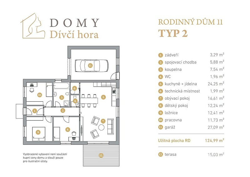 Pokud se rozhodnete zarezervovat si tuto novostavbu RD č.16 o dispozici 4+kk o zastavěné ploše 155 m² s pozemkem 799 m², ►můžete se stěhovat na podzim 2026. ►Jedná se o bungalov o dispozici 4+kk. Z obývacího pokoje vstupujeme na terasu 15 m². K domu náleží 2 parkovací stání a garáž o velikosti 27 m². ►V rámci technického vybavení můžete počítat s tepelným čerpadlem pro teplovodní podlahové topení i ohřev užitkové vody (s možností chlazení podlah v letních měsících) či s plastovými okny s trojskly. Laminátové plovoucí podlahy jsou v obytných místnostech, dlažba pak v chodbě, technické místnosti, koupelně a WC, zde dále obklady a sanita (vana nebo sprchový kout, WC, umyvadlo, baterie). Lokalita Dívčí hora, kde se rodinný dům nachází, leží na okraji obce Práče v bezprostředním sousedství Lechovic. Díky blízkosti hlavního tahu Brno – Znojmo Vám tak cesta autem do Znojma zabere pouhých 10 minut, do jihomoravské metropole bude trvat jen něco málo přes 30 min. V obci se nachází bohatá občanská vybavenost mateřská škola, 1. stupeň základní školy, obchody s potravinami, gastronomické zařízení, konají se zde pravidelné kulturní akce. Nalezneme zde i výborné podmínky pro sportovní aktivity fotbalové hřiště, sportovní halu nebo obcí vedoucí cyklostezku. V sousedních Lechovicích se nachází Zámek Lechovice s udržovaným parkem, v nedalekých Banticích je pak dostupné přírodní koupaliště a sportovní hřiště. A dále v Těšeticích je také golfové hřiště. Pro více informací a případnou prohlídku mě již nyní neváhejte kontaktovat. S financováním Vám rádi pomůžeme.