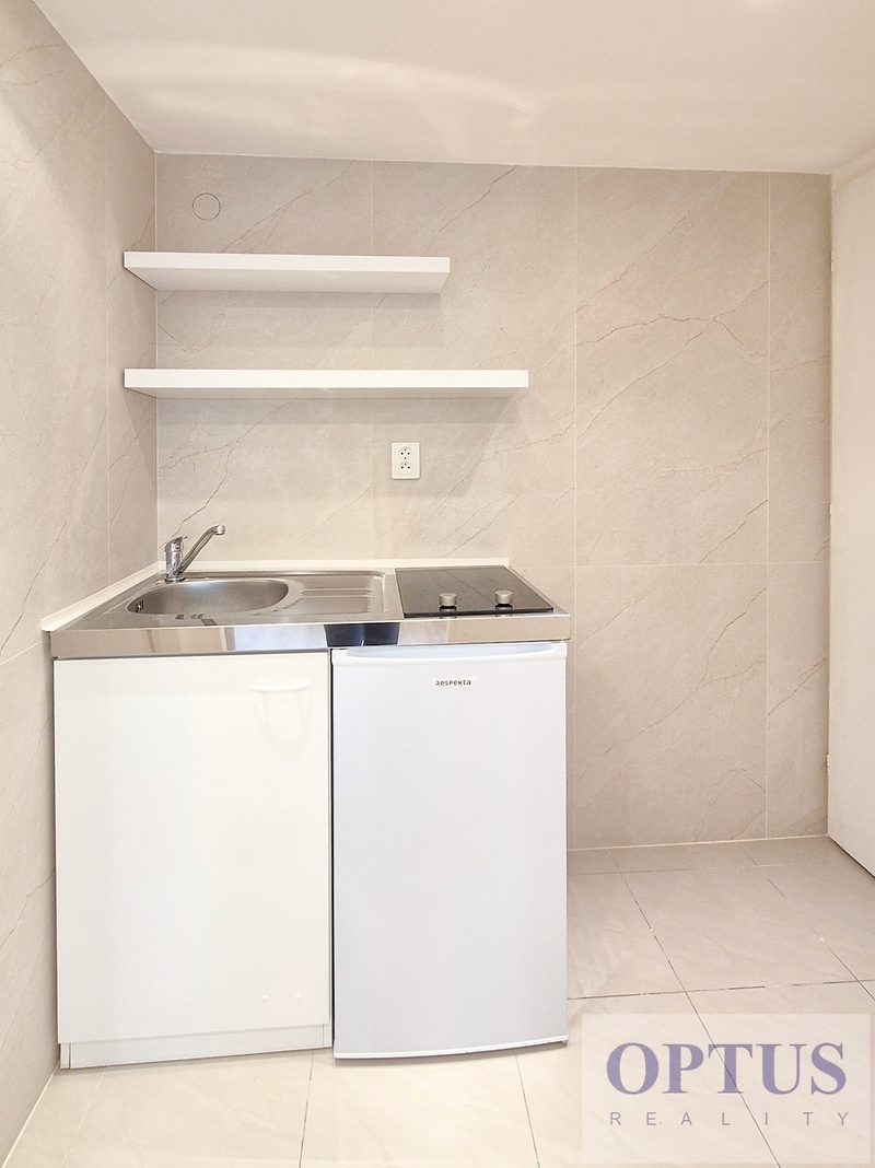 Praha 4 - Podolí, ul. Levá – nachází se v klidné vilové čtvrti v blízkosti Vyšehradu, nedaleko stanice metra Pražského povstání a v pěší dostupnosti tramvají č. 2,3,17 a 21; v blízkém okolí je k dispozici plná občanská vybavenost, Podolský bazén, sportovní areál (tenisové, fotbalové, basketbalové a parkurové hřiště) a venkovní posilovna. Nabízíme nezařízený ateliér o dispozici 1 + kuchyňský kout (cca 25 m2) po rekonstrukci, který se nachází v 1. nadzemním podlaží zrenovované činžovní vily bez výtahu, vila je umístěná v zahradě ve svahu. Ateliér tvoří pokoj o velikosti cca 16 m2 s výhledem do zahrady, koupelna se sprchovým koutem + WC a předsíň s kuchyňkou. Další vybavení: kuchyňská linka s elektrickou dvojplotýnkou a lednicí, dále pračka, žaluzie na okně v koupelně, kolejnice pro záclony / závěsy v pokoji, vinylové podlahy a dlažba, elektrické vytápění – přímotopy, internetové připojení je možné přes Wi-Fi (5G). Ateliér je určen pouze pro 1 osobu bez domácích zvířat s trvalým bydlištěm v ČR. Prostor byl zkolaudován jako ateliér (nebytový prostor) a nelze si v něm zřídit trvalé bydliště ani získat rezidenční parkovací kartu. Cena 11.000 Kč/měsíc + poplatky (záloha 1.500 Kč/osobu/měsíc + přepis elektřiny na nájemce) + internet + provize RK 1 měsíční nájem. Peněžní jistota (kauce) činí 3 měsíční nájmy. Realitní kancelář nemá k dispozici energetický štítek, a proto uvádíme třídu energetické náročnosti budovy G.