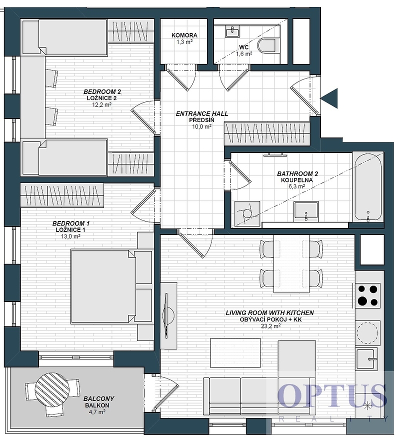 Praha 9 - Hloubětín, ul. Waltariho – nachází se v novém rezidenčním komplexu Suomi Hloubětín, lokalita na okraji parku Zahrádky, v klidné přírodní lokalitě u říčky Rokytky, s dětským hřištěm a fitness stezkou; v blízkosti zastávky tramvají (č. 14,19 a 36) a v blízkém dosahu obchodních center Fénix a Galerie Harfa. Nabízíme moderní nezařízený byt 3 + kuchyňský kout (72,8 m2) + balkon 4,7 m2 s krásným výhledem do parku, situovaný v 1. patře novostavby rezidenčního domu z r. 2021 s výtahem. Byt tvoří obývací pokoj o velikosti 23,2 m2 propojený s plně vybaveným kuchyňským koutem a se vstupem na balkon, 2 ložnice (13 m2 a 12,2 m2), koupelna s vanou, samostatná toaleta s bidetovou sprškou, komora a předsíň. Další vybavení bytu: vybavená kuchyňská linka s vestavěnými spotřebiči (indukční varná deska, el. trouba, lednice s mrazákem, mikrovlnná trouba, myčka a digestoř), dále je v bytě příprava pro vysokorychlostní internet (až 1 Gb/s), vestavěná skříň v předsíni, venkovní žaluzie, laminátové podlahy a centrální vytápění. K bytu náleží sklep a je možné si pronajmout garážové stání za příplatek 1.500 Kč/měsíc. K dispozici od 01.06.2026. Cena 30.000 Kč/měsíc + služby 5.000 Kč/měsíc (kalkulováno pro 2 osoby) + elektřina v bytě + internet + provize RK ve výši 1 měsíčního nájmu. Požadovaná vratná jistota (kauce) činí 2 měsíční nájmy. Třída energetické náročnosti budovy je dle zákona 406/2020 Sb. klasifikována jako B.