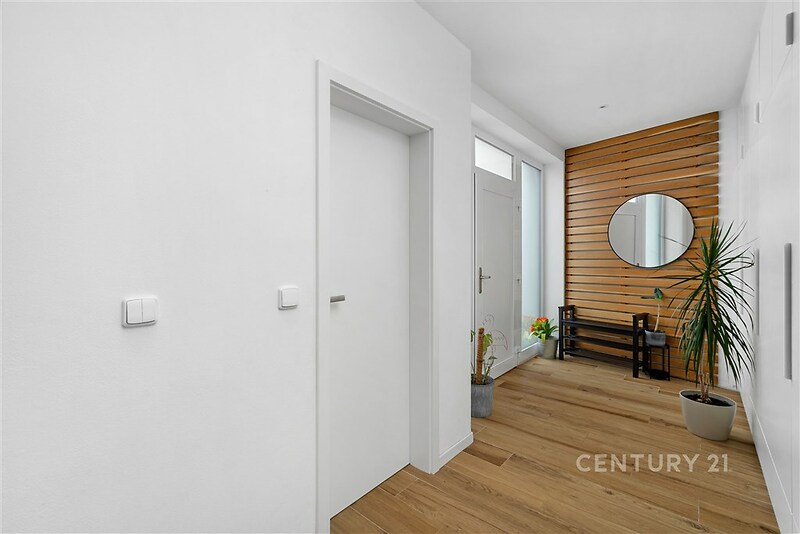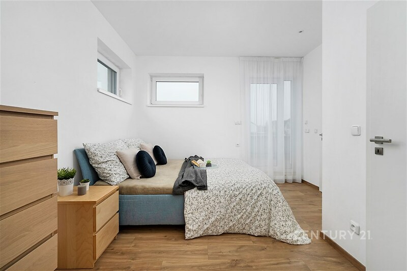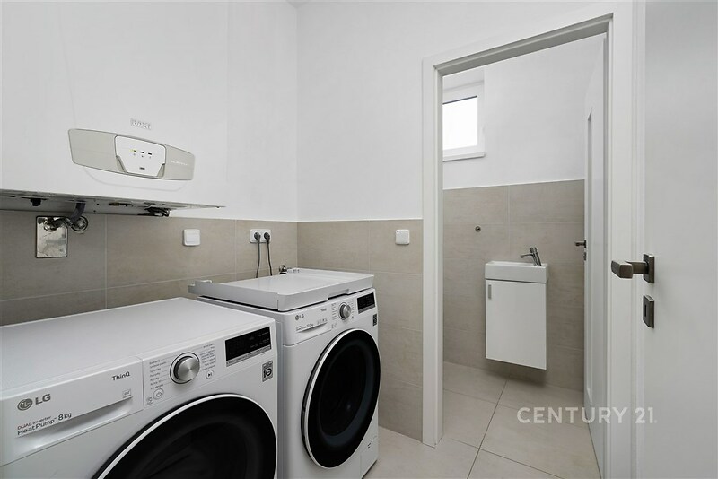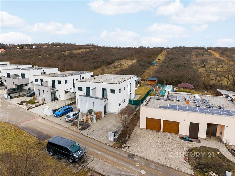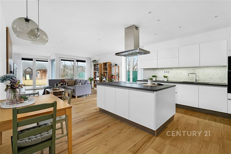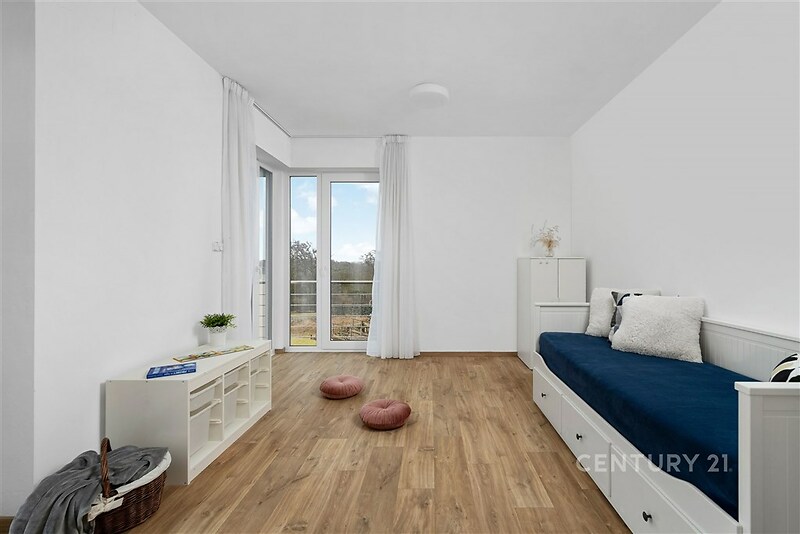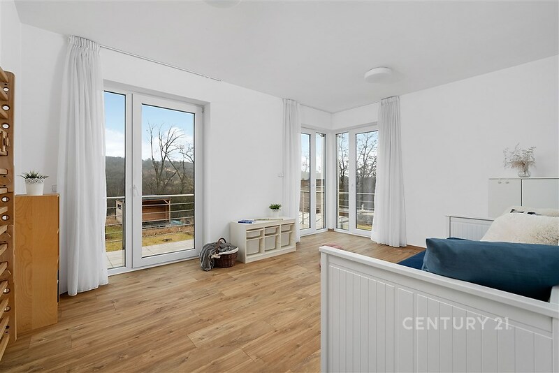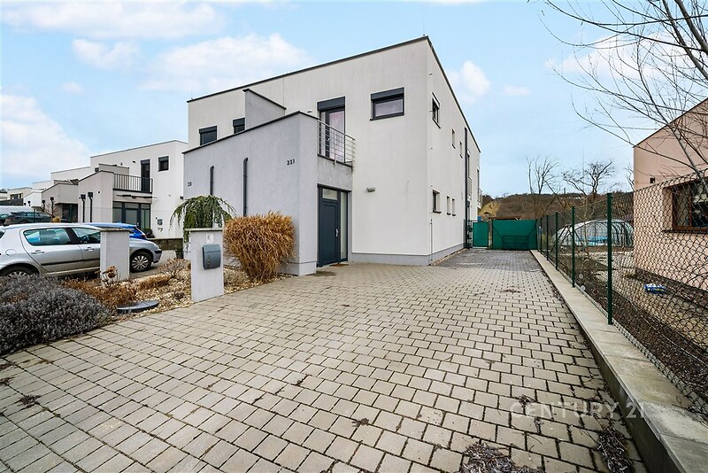 Představte si domov, kde ráno otevíráte okna do klidné krajiny, kde máte dostatek prostoru pro rodinu i vlastní soukromí a přitom jste za pár minut v Brně. V oblíbené obci Hajany nabízíme moderní rodinný dům o dispozici 4+kk a užitné ploše 147,5 m² na pozemku o velikosti 612 m², kolaudovaný v roce 2021. Dům splňuje energetickou třídu B, tedy velmi úsporný standard, který zajišťuje dlouhodobě příznivé provozní náklady. Tato nemovitost spojuje současnou architekturu, kvalitní provedení a příjemnou atmosféru místa, kde se budete cítit opravdu doma. První nadzemní podlaží tvoří otevřený a velkorysý obytný prostor, který přirozeně propojuje obývací část, jídelnu a kuchyni. Kuchyňská linka s ostrůvkem nabízí dostatek pracovní i úložné plochy a díky svému čistému designu působí nadčasově. Velkoformátová okna přivádějí do interiéru dostatek přirozeného světla a umožňují přímý vstup na terasu a zahradu, čímž vytvářejí plynulé propojení interiéru s exteriérem. Na tomto podlaží se dále nachází vstupní chodba s úložnými prostory, pracovna, technická místnost a samostatné WC. Dispozice je praktická, promyšlená a vhodná pro každodenní rodinný život i setkávání s přáteli. Horní podlaží je vyhrazeno klidové části domu. Nacházejí se zde tři samostatné pokoje, které mohou sloužit jako ložnice, dětské pokoje nebo pracovna. Hlavní ložnice nabízí přímý vstup na balkon s výhledem do okolní zeleně, což vytváří příjemný pocit prostoru a soukromí, vlastní koupelnu a šatnu. Součástí patra je prostorná koupelna v moderním designu s vanou i sprchovým koutem a samostatné WC. Celé podlaží působí světlým a vzdušným dojmem a poskytuje dostatek komfortu pro všechny členy domácnosti. Pozemek o velikosti 612 m² nabízí dostatek prostoru pro relaxaci, rodinné aktivity i případné budoucí úpravy podle vlastních představ. Na obytnou část plynule navazuje terasa, která vytváří ideální místo pro každodenní posezení i letní setkávání s přáteli. Otevřený výhled do okolní krajiny za domem podtrhuje pocit klidu, soukromí a prostoru, který je v této lokalitě velmi příjemným benefitem. Součástí zahrady je retenční nádrž s možností dopouštění z vodovodu a technologie pro automatické zavlažování trávníku, což usnadňuje údržbu a zvyšuje komfort užívání. Parkování je zajištěno přímo na vlastním pozemku, a to s dostatečnou kapacitou pro více vozidel. Dům je postaven z cihelného zdiva Porotherm 30 Profi a zateplen minerální vatou o tloušťce 150 mm. Energetická náročnost budovy odpovídá třídě B, tedy velmi úsporné kategorii, což se pozitivně promítá do dlouhodobých nákladů na provoz. V celém domě je instalováno podlahové vytápění napojené na plynový kotel a plastová okna jsou osazena izolačními dvojskly. Provozní náklady jsou stabilní a přehledné: elektřina přibližně 1 590 Kč měsíčně, plyn cca 2 040 Kč měsíčně, voda zhruba 1 000 Kč měsíčně, roční stočné přibližně 9 000 Kč. Poplatek za komunální odpad se v obci nehradí.
