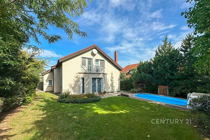 Představujeme Vám exkluzivně nabídku rodinného domu v jedné z nejatraktivnějších lokalit v obci Průhonice. Zděný dům s užitnou plochou 271 m2 na pozemku o výměře 811 m2 je dispozičně řešen jako 7+1 s dvougaráží. Vnitřní dispozice domu je rozdělena do dvou podlaží. V přízemí se nachází obývací pokoj s krbem se vstupem na zahradu, kuchyně, která je propojená s obývacím pokojem, pokoj pro hosty, soc. zařízení, technická místnost. V prvním patře jsou tři samostatné pokoje, pracovna, koupelna, WC a velká hlavní ložnice s vlastní koupelnou a šatnou. Předností této nabídky je samozřejmě samotná poloha domu. Jedná se opravdu o krásné a klidné místo ve vilové čtvrti vhodné pro ty, kdo chtějí mít nemovitost v reprezentativní lokalitě. Průhonice jsou vyjímečným místem pro rodinný život a díky tomu je nemovitost vhodná jak pro rodinné bydlení, tak je možné dům dlouhodobě pronajmout. Na pozemku jsou již vzrostlé stromy, které zaručují absolutní soukromí a tak Vás nikdo nebude rušit při grilovaní, koupání v bazénu nebo jen při relaxaci na zahradě. V blízkosti domu je jeden z nejkrásnějších parků v ČR spadající mezi památky UNESCO Průhonický park a tak si na své přijdou milovníci přírody. V obci je také řada kvalitních restaurací a kaváren, je zde banka, obecní úřad, lékař, základní a mateřská škola a mnoho dalších služeb s vysokou úrovní, které bydlení v této lokalitě dělají velmi komfortní. V docházkové vzdálenosti od domu je populární restaurace Hliněná bašta. V dojezdové vzdálenosti je také nákupní a zábavní zóna v Čestlicích, jehož dominantou je Aquapark Čestlice nebo OC Westfield, který je vzdálen 10 minut jízdy. Rádi Vám poskytneme více informací. Domluvte si prohlídku ještě dnes a přijďte se sami přesvědčit o unikátnosti této lokality.