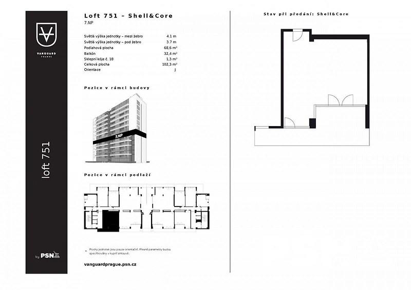 Představujeme vám jedinečnou příležitost stát se majitelem loftu v ikonické rezidenci Vanguard Prague, kde se industriální design setkává s moderním životním stylem. Tento loft nabízí celkovou obytnou plochu 68,6 m2 a velkorysý balkon o velikosti 32,4 m². Prostor nabízíme jako shell/core, který dává vyniknout vaší kreativitě a definuje vaši představu o domově. Vanguard Prague – bydlení jako v 5* hotelu. Rezidence Vanguard Prague představuje standard moderního života. Jako rezident můžete využívat špičkových služeb a vybavení, které jsou součástí tohoto prestižního projektu. Recepce s nepřetržitým provozem (24/7) a concierge zajistí váš komfort a bezpečí. Pro chvíle odpočinku a regenerace je k dispozici soukromé Spa s 18 m bazénem, vířivkou, saunou a párou, stejně jako plně vybavené fitness centrum. Lokalita, která má co nabídnout Rezidence se nachází v atraktivní části Modřan, která kombinuje klid rezidenční čtvrti s rychlou dostupností do centra Prahy. Vedle domu zastávka tramvaje a autobusu. Okolí nabízí bohaté možnosti aktivního i relaxačního vyžití – od cyklostezek podél Vltavy, golfového hřiště Hodkovičky až po moderní restaurace a kulturní místa. Bydleni ve Vanguard je perfektní volbou pro ty, kteří hledají prostor, který spojuje kreativitu, design, funkčnost, jedinečnost a komfort bydlení. Tato nabídka představuje více než jen bydlení – je to nová definice životního stylu. Popis nemovitosti • industriální stavba • rekonstrukce v r. 2023 • wellness • bazén • soukromé kino • recepce • 24/7 ostraha • Concierge • Restaurace v domě • Střešní panoramatická terasa • Grilovací terasa • Parkovací místa • Úložné prostory