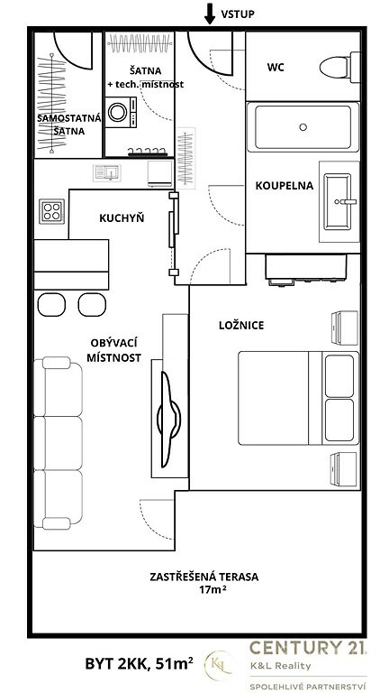 Představujeme vám k dlouhodobému pronájmu prostorný a nadstandardně vybavený byt o dispozici 2+kk a ploše 51 m², situovaný v klidné a žádané lokalitě na ulici Topolová. K dispozici je navíc prostorná krytá terasa o velikosti 17 m² s výhledem do zeleně, která poskytuje příjemné místo pro relaxaci nejen v letních měsících. Byt je kompletně vybavený, v kuchyni naleznete indukční varnou desku, elektrickou troubu, myčku nádobí i vestavěnou lednicí s mrazákem. Dále je k dispozici samostatná toaleta, koupelna s vanou, šatna s úložnými skříněmi na míru a pračkou. Na patře bytu je navíc umístěna praktická komora vhodná k uložení kol, lyží, pneumatik a sezónního vybavení. Další úložný prostor nabídne i šatní skříň na chodbě. Součástí pronájmu je vyhrazené venkovní parkovací stání. Lokalita nabízí vynikající dopravní dostupnost – nájezd na dálnici je vzdálen pouhé 3 minuty jízdy autem, tramvajová zastávka je dostupná pěšky přibližně za 10 minut. V okolí se nachází přírodní lokalita s rybníkem Hamrys a cyklostezkou, ideální pro sportovní i rekreační aktivity. Dům je celkově tichý a dobře udržovaný vhodný pro nájemce, kteří ocení klidné prostředí, vysoký standard a zároveň výbornou dostupnost do centra města. Majitel požaduje nájemce bez zvířat, vhodné jak pro jednotlivce, tak i pár. Pro více informací a prohlídku nás neváhejte kontaktovat.