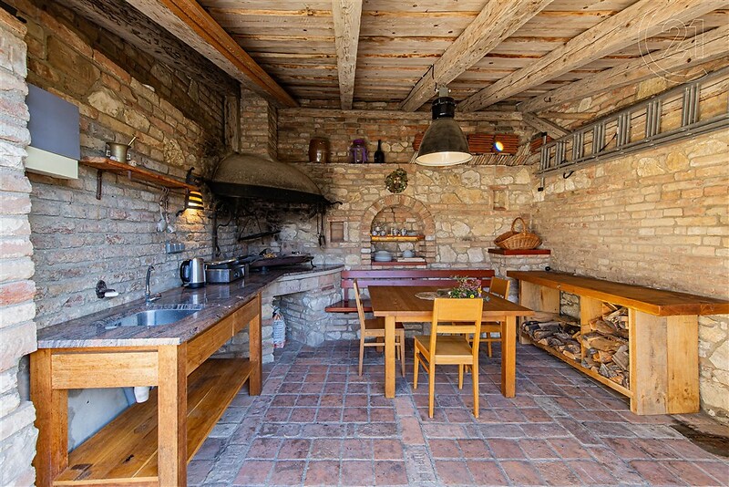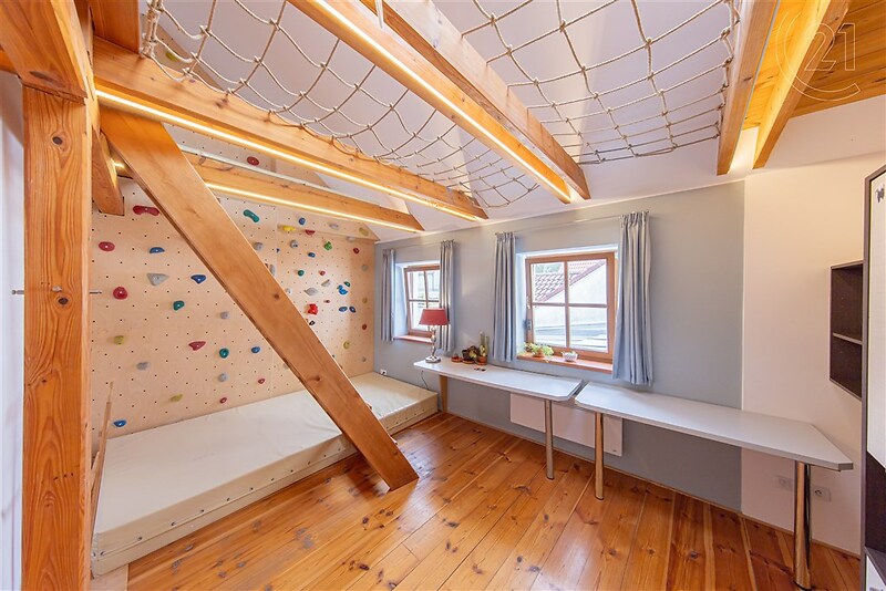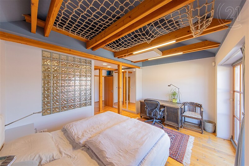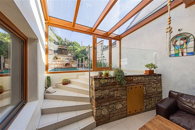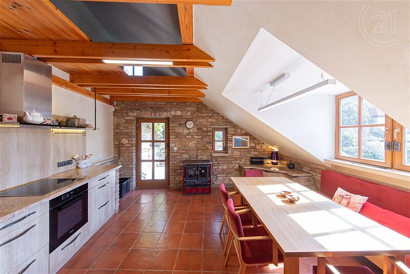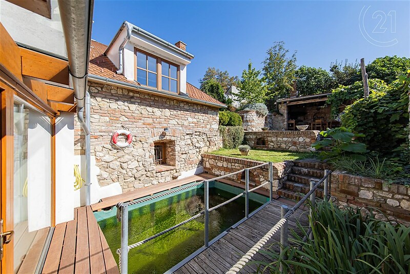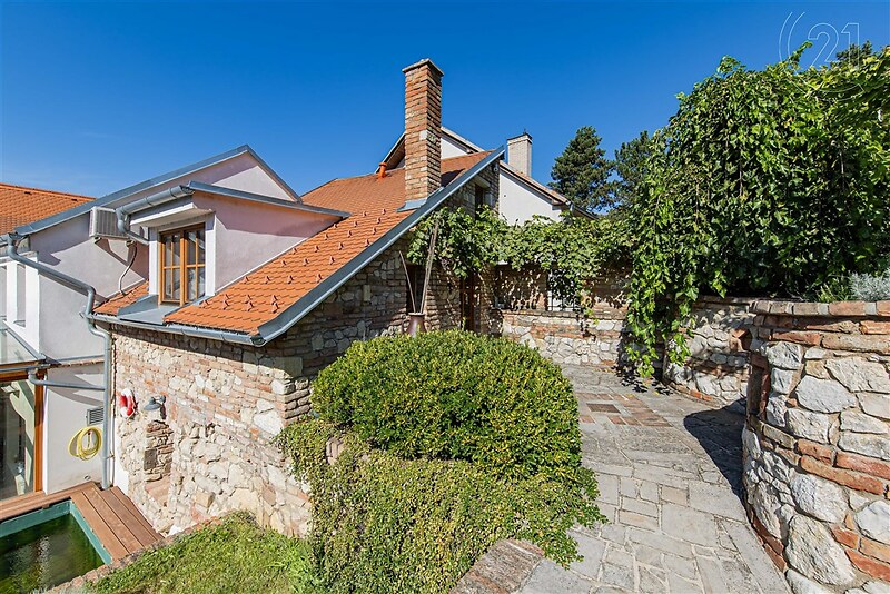 Představujeme Vám k prodeji jedinečnou nemovitost s bohatou historií, soukromím, moderním komfortem a vinicí v srdci malebného Mikulova. V domě najdete klid pro rodinu i své hosty. Při vstupu do nemovitosti vás uvítá prostorná hala s originálním kovovým schodištěm. Hala ústí do zahrady a nabízí výhled na zeleň a vodní plochu přes prosklenou stěnu. Na zahradě najdete zastřešené posezení s krbem, ideální pro čas strávený s rodinou a přáteli a samočistící bazén, nabízející dokonalou oázu klidu a relaxace. Spodní část domu je v současné chvíli prostorem nejen pro uměleckou tvorbu, umístěno je zde i odhlučněné nahrávací studio a zkušebna současného majitele, Davida Kollera. Ze zkušebny, vybavené projektorem i plátnem, která může novému majiteli sloužit jako obývací pokoj nebo kuchyň s jídelnou (inž. sítě jsou připraveny), je přímý vstup do chodby s dřevěnou saunou a stylovou koupelnou v designu navazujícího sklípku. Nejen milovníci vína ocení v této části domu prostorný sklep s nastavitelným chlazením, který je vhodný pro uskladnění ovoce, zeleniny nebo právě vína. Mezi saunou a sklípkem je v současnosti technická místnost, jejíž další využití je zcela v gesci nového majitele. Ve druhém patře domu jsou tři vzdušné prostorné pokoje s vysokými stropy, lanovými sítěmi, kde můžete relaxovat a s horním prostorem vhodným k dalšímu využití, ať již jako úložný prostor či další lůžkový prostor. Ložnice má vlastní balkon s podlahou z Massaranduby a nabízí výhled do ulice a na celý Mikulov. Každý pokoj má vlastní koupelnu. Jeden z pokojů navíc disponuje i dětskou lezeckou stěnou a velkým horním prostorem se dvěma lůžky. Pokoje jsou spojeny chodbou, která ústí v plně vybavenou kuchyni s jídelním stolem a italskými kamny. Kuchyň je zároveň vstupem na terasu navazující na venkovní posezení letní kuchyně, odkud je nádherný výhled na okolí. Za domem, v další úrovni pozemku nad letní kuchyní, se nachází dřevostavba s koupelnou a kuchyňkou, hned vedle něj je umístěna i venkovní vířivka. Výjimečný výhled na dominantní zámek Mikulov a do vlastní vinice na druhé straně, dodává celému místu nezaměnitelnou atmosféru. V horní části pozemku je zahrada s vlastní studnou i zavlažovacím systémem, zahradním domkem pro umístění nářadí, vzrostlými stromy a vinicí, dodávající nemovitosti autentický vinařský ráz. Vinice nabízí majiteli možnost produkce vlastního vína, eventuálně je možné ji pronajmout. Na pozemku o rozloze 2505 m² najdete nejen kouzlo historické architektury, jejíž základy sahají až do 17. století, ale také moderní prvky vyššího standardu. Přestavbu domu do současné podoby vedl Ing.arch. Štěpán Děnge. Pokud hledáte spojení luxusního bydlení, umění, výjimečného místa, vinařského ráje a propojení s přírodou a krásnými výhledy, máme pro vás jedinečnou příležitost! Rádi vás celým domem, zahradou i vinicí provedeme a doplníme zbylé informace. K prodeji domu nabízíme kompletní servis včetně exkluzivního financování. Budeme se těšit na viděnou. Klára a Lucie