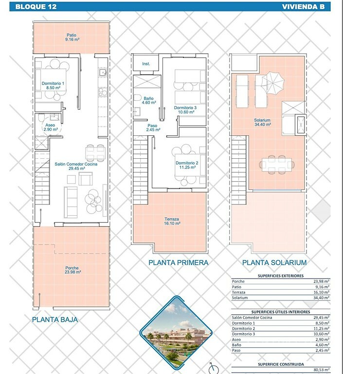 Představuji Vám moderní rezidenční projekt, který je aktuálně ve výstavbě v oblíbené lokalitě Pilar de la Horadada. Projekt nabízí přibližně 70 apartmánů o dispozici 4+kk, každý s 3 ložnicemi, 2 koupelnami a dvěma prostornými terasami od 279 000 EUR. Na výběr máte apartmány: 1. v přízemí se zahrádkou, 2. v prvním patře se střešní terasou Součástí rezidence je společný bazén, dětské hřiště a další vybavení pro pohodlný odpočinek. V ceně každého apartmánu je již zahrnuto: 1 parkovací místo v podzemních garážích, centrální klimatizace, plně vybavená kuchyň, vestavěné skříně a koupelnový nábytek Klienti si mohou zvolit z různých dekorů a stylů, které nabízí developer. Výstavbu realizuje renomovaný developer, který má v této oblasti za sebou desítky úspěšných rezidenčních projektů. Rezidence bude ideální volbou pro rodiny s dětmi i pro klienty, kteří hledají moderní bydlení u moře s veškerým komfortem. Lokalita & občanská vybavenost: Projekt je situován v oblasti s výbornou občanskou vybaveností: v pěší vzdálenosti najdete supermarket Mercadona, sportovní areál, JYSK, restaurace a kavárny. Město Pilar de la Horadada nabízí zdravotní středisko, lékárny, stylové obchody i gastronomii, pláž je vzdálena (2 km) do 5 minut jízdy autem, Dopravní dostupnost: města Murcia a Cartagena jsou vzdálena cca 30 minut jízdy, letiště Alicante je vzdálené cca 45 minut autem, Cartagena nadchne svým přístavem, historickým centrem, krásnými uličkami a místní kulturou. Projekt nabízí aktuálně na výběr více než 70 apartmánů. Dokončení výstavby je plánováno na léto 2026. Osobní prohlídka je možné v češtině i v angličtině. Postaráme se i o veškerou organizaci – od dopravy z vašeho domova na letiště, přes letenky, ubytování a stravování během pobytu, až po samotnou prohlídku v lokalitě. Vše zařídíme tak, abyste se mohli soustředit pouze na samotné rozhodnutí. Samozřejmě vám rádi i pomůžeme s kompletním právním servisem, včetně převodu nemovitosti nebo zajištění hypotéky. Pokud máte jakékoliv dotazy nebo byste se rádi podívali i na jiné nabídky, které v současnosti prodávám ve Španělsku, neváhejte mě kontaktovat. Rád se s Vámi setkám osobně. Pozn. Fotky a půdorys zobrazené na obrázku pocházejí z jednoho bytu a slouží pouze pro orientační účely. Zbylé fotky a půdorysy můžu zaslat emailem či ukázat na osobní konzultaci.