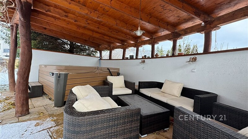 Překrásný rodinný dům situovaný na adrese Útěchov, 64400 Brno, nabízí komfortní bydlení na venkově s výhodami městské infrastruktury. Třípodlažní objekt s výškou stropu 3 m v 1.NP a celkovou obytnou plochou 266 m², zastavěnou plochou 160 m² a užitkovou plochou 224 m² je postaven na pozemku o rozloze 854 m². Nemovitost je přístupná přes asfaltovou cestu a je napojena na veřejnou kanalizaci a vodovod. Vytápění tepelným čerpadlem s FTV (fotovoltaikou) a krbem na dřevo. Tato nemovitost, charakterizovaná jako domov pro vícegenerační bydlení, nabízí dvě obytné jednotky, což umožňuje flexibilní využití pro velkou rodinu. 1. PP Garáž (31,35 m²). Výška stropu 2,65 m 1. NP Dům má v přízemí bezbariérový vstup s bytem 1+1 (27,73 m²) pro člena rodiny (kuchyňka je ve formě přípravy aktuálně využívána jako průchozí šatna do koupelny). V přízemí je dále obývací pokoj s kuchyní (69,13 m²) a spíží (2,85 m²), zádveří s vestavěnými skříněmi (7,94 m²), vstupní hala (11,44 m²) se schodištěm (8,42 m²), technická místnost s tepelným čerpadlem a FTV (2,28 m²) a toaleta s umyvadlem (2,17 m²). Výška stropu 3 m. 2.NP Schodištěm přístupné druhé podlaží má centrální chodbu (21,44 m²) se vstupy do všech místností. Koupelna se saunou vanou a sprchou (10,84 m²), toaleta (2,27 m²), pokoj (17,05 m²), pokoj (19,33 m²), pokoj (14,7 m²), šatna (5,71 m²). Výška stropu 2,85 m. Nemovitost je připravena k nastěhování bez nutnosti dalších investic. Topení a rozvod teplé vody jsou zajištěny tepelným čerpadlem a FTV. Obývací prostor má krb na dřevo. Měsíční náklady na provoz domu jsou 6 000 Kč (elektřina). Exteriér domu je doplněn překrásnou zahradou, která poskytuje dostatek prostoru pro odpočinek na čerstvém vzduchu a aktivní trávení volného času. Pro milovníky venkovního posezení je k dispozici i terasa s pergolou a jacuzzi. Starost o zahradu zajišťuje automatická závlaha a vlastní vrtaná studna. Parkování není problém, jelikož tato nemovitost disponuje třemi parkovacími místy, z toho jedno v garáži (31,35 m²) a další na ulici na které podíl se sousedy, tedy parkujete na vlastním pozemku u domu. Ke zvýšení bezpečnosti přispívá i stávající bezpečnostní systém. Rodinný dům se nachází v městské část Útěchov (stále v zóně MHD 101) s veškerou občanskou vybaveností v dosahu. Dopravní dostupnost je vynikající díky blízkosti autobusové dopravy, vlastního automobilu či městské hromadné dopravy. Nedaleko se rovněž nacházejí louky, pole, lesy a venkovský ráz, což přispívá ke klidnému životnímu prostředí i s domácími mazlíčky. Majetek je v osobním vlastnictví s možností financování prostřednictvím hypotéky. Nabídka je ideální pro ty, kteří hledají spojení komfortního bydlení, funkčnosti a blízkosti přírody. Pro více informací kontaktujte makléře Petra Vyskočila.