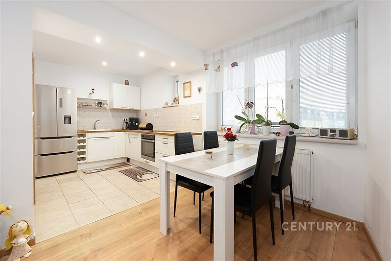 Prodej bytu 3+kk s garáží a pozemkem za domem, včetně obchodního prostoru v rodinném domě Dukelské nám. Hustopeče, okr. Břeclav. Nabízíme k prodeji bytovou jednotku 3+kk 76 m2 umístěnou v 1. patře rodinného domu na atraktivní adrese Dukelské náměstí v Hustopečích. Dům je situován přímo na náměstí, v přízemí se nachází obchodní prostor 81 m2, na investici pronájem, či pro vlastní využití. Byt je tak vhodný jak k vlastnímu bydlení, tak i jako investiční příležitost díky tomuto spojení a díky své poloze v centru města. Dům je napojen na všechny IS. Byt 3+kk je po rekonstrukci. Disponuje dvěmi samostatnými pokoji, obytným prostorem s kuchyní, jídelní částí a kuchyňskou linkou s vestavnými spotřebiči (elektrická varná deska, sporák a myčka), samostatná lednice s mrazákem. Koupelna s umyvadlem a sprch. koutem, samostatné WC. Byt má prostornou komoru s plyn. kotlem a s prostorem pro pračku a sušičku aj. Plastová okna a nové vchodové dveře bytu. Byt má menší vstupní chodbu se skříněmi. Podlahy tvoří dlažba a plovoucí podlahy. Vytápění a ohřev vody plyn. kotlem. Provozní náklady cca 6 tis. Kč. Obchodní prostor v přízemí domu disponuje obchodní, vstupní částí z ulice, kanceláří, koupelnou s WC, skladem možnost propojení místností. Obchodní prostor i byt je nyní pronajímán s výpovědní lhůtou. Součástí prodeje je i podíl na zahradě za domem, která poskytuje příjemné, možné posezení a prostor k odpočinku, který si vytvoříte. K nemovitosti dále náleží garáž a možnost příjezdu ze zadní strany pozemku, což zvyšuje komfort bydlení i parkování v centru města. Hustopeče nabízí kompletní občanskou vybavenost, dobrou dopravní dostupnost na trase Brno Břeclav (sjezd D1, vlak a bus spojení) a příjemné prostředí pro každodenní život sportovní zázemí, kultura, několik ZŠ, MŠ, Gymnázium. PENB bude dodán. Těšíme se na společnou prohlídku, řešíme včetně financování.