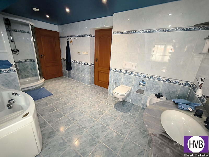 Prodej moderního, kompletně zařízeného RD 5+1 340 m² s dvougaráží a terasou na pozemku 1126 m², Psáry - Dolní Jirčany, Praha - západ s bazénem a okrasnou zahradou ve velmi tiché lokalitě. Dispozice domu zahrnuje rozlehlý obývací pokoj se vstupem na terasu a k bazénu, jídelnu, kuchyni, halu, posilovnu, saunu, technickou místnost, sociální zařízení a dvougaráž. V prvním patře se třemi klimatizačními jednotkami se nachází 3 pokoje, šatna, chodba a koupelna se soc. zařízením . Vytápění domu el. přímotopy, vlastní studna s filtračním zařízením (38 m), jímka (50m3). Městský vodovod a kanalizace v dosahu. Okrasná, udržovaná zahrada s automatickým závlahovým systémem, terasy kolem domu z italské dlažby. Venkovní vyhřívaný bazén se slanou vodou (8x4m). Zabezpečení domu prostřenictvím EZS + bezp. žaluzie. Možnost zajištění financování hypotékou.