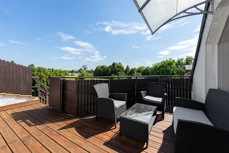 Prodej pěkného, rodinného domu se zahradou a terasou ul. Stránská, Brno Slatina. Dům je vhodný pro rodinné bydlení a současně i pro více generační bydlení. Kolaudace přízemí r. 2001 a mezonet r. 2021. Je situován v klidné, slepé ulici, v okolí rodinných domů a zahrad, vedle národní přírodní památky Stránská skála. Výborná poloha domu do centra města cca 10 min. MHD tram i bus a současně v blízkosti nájezdu na D1. Parkování možné na vlastním pozemku, nebo veřejné v ulici. V přízemí domu je kuchyňská linka s plynovým sporákem a elektrickou troubou, digestoří. Samostatné WC a koupelna s umyvadlem, sprchovým koutem a kombinovaným, plynovým kotlem na ohřev vody a vytápění. V domě jsou všechny IS. Prostorná obývací hala s jídelnou a krbem je orientována do zahrady s příjemným výhledem do zeleně. Součástí přízemí je i ložnice s vestavnými skříněmi a druhým obytným pokojem. Dům je z části podsklepen v domě jsou dva sklepy. Vinný, klenutý, cihlový sklep a sklep na zeleninu. Do patra domu, kde je umístěn mezonetový byt, je samostatný vstup přes zahradu, nebo je přístup po schodišti ze společné vstupní chodby domu. Moderní kuchyně s vestavnými spotřebiči (elektrická varná deska a trouba, myčka, digestoř) spolu s obytným prostorem a krbem tvoří jeho hlavní část. Z obytné části je přímý vstup na terasu s posezením a na zahradu. V této části podlaží je současně ložnice s koupelnou a WC, umyvadlem, sprchovým koutem a menší vanou pro děti. O patro výše po schodišti je pak knihovna s chodbou, dva pokoje a druhá koupelna s WC, umyvadlem a sprchovým koutem. Celý byt je klimatizován. Okna jsou plastová, střešní, euro okno do ulice s venkovním zastíněním a žaluziemi. Podlahy dlažba, plovoucí podlaha a linoleum. Dům má vjezd na pozemek z ulice a pěstěnou zahradu, která zve k posezení u grilu a k relaxaci. Náklady na energie jsou kolem 6.500, Kč/měsíc. PENB D. Zajišťujeme včetně financování a těšíme se na společnou prohlídku.