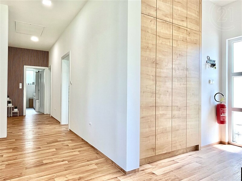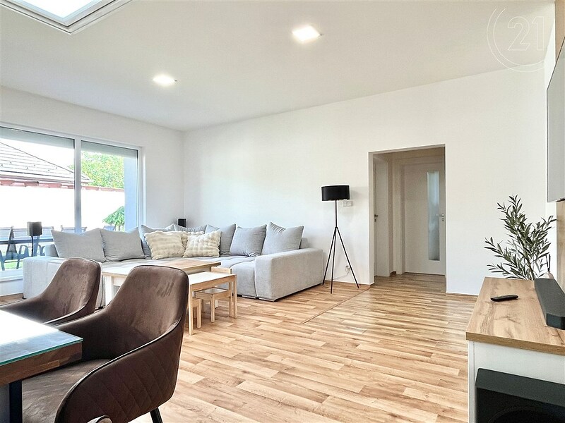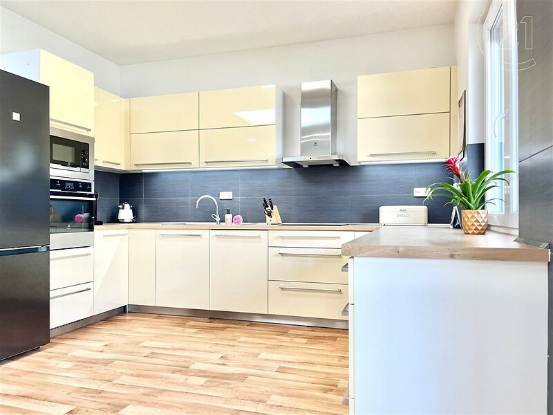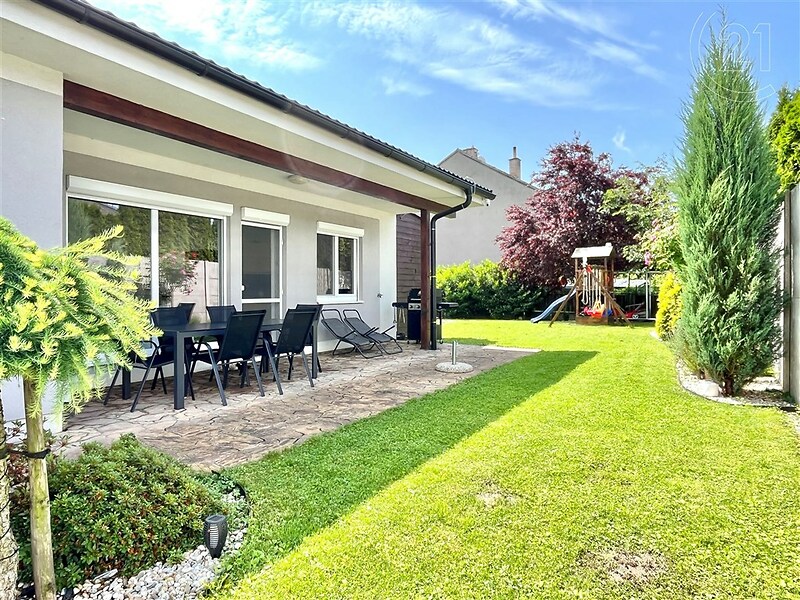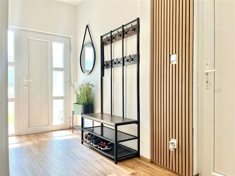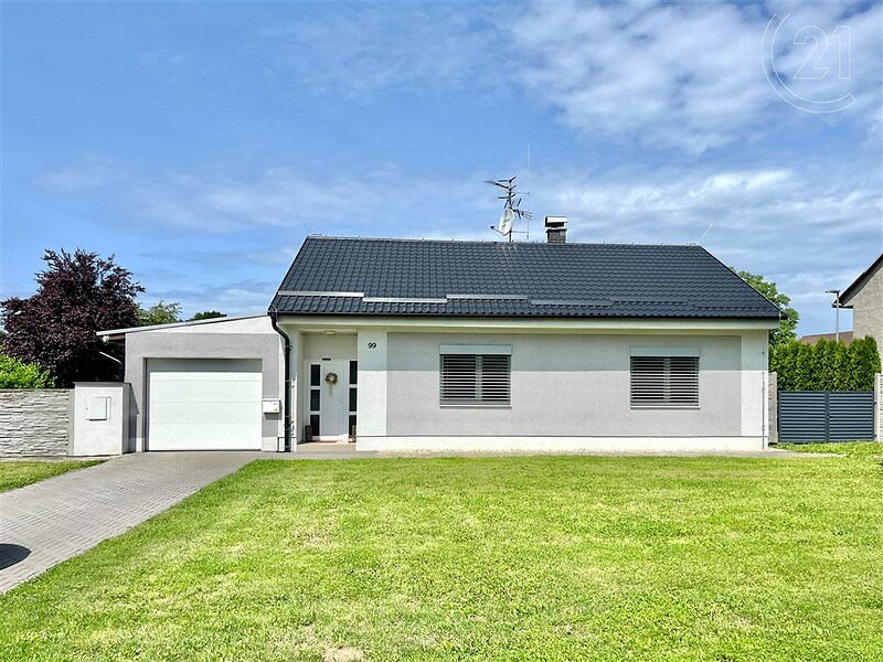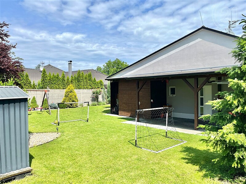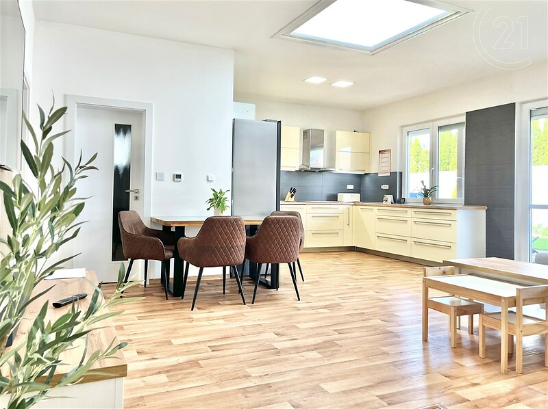 Prodej samostatně stojícího rodinného domu 4+kk s pozemkem o celkové rozloze 566 m² v Bílanech, místní části města Kroměříže. Tento dům kolaudovaný v roce 2018 splňuje veškeré požadavky na moderní rodinné bydlení s naprostým soukromím. Kvalitní zateplená dřevěná konstrukce s celulózovou izolací mezi sloupky. Teplovodní podlahové vytápění v celém domě napojené na plynový kotel. Okna s trojskly. To vše zajišťuje tepelný komfort, účinné odhlučnění a řadí dům do energetické kategorie B. Součástí skvěle dispozičně řešeného domu je kuch. linka s vestavnými spotřebiči a vestavné skříně v chodbách. Dvě koupelny = 2x WC, vana, sprchový kout a prostor na pračku i sušičku. Komora na skladování potravin. Dostatek denního světla v obývací části zajišťuje stropní světlík. Sedlová střecha s plechovou krytinou ve formátu tašek. Vinylové podlahy v dekoru dřeva v obytných místnostech. V koupelnách dlažba a jako doplňkové vytápění stropní topné panely. Technické vybavení. • Elektricky ovládané venkovní žaluzie a rolety • Venkovní kamerový systém kolem celého domu • Příprava na krbová kamna v obývacím pokoji Udržovaná zahrada s okrasnými keři a stromy, krytým venkovním posezením, dětským hřištěm a uzamykatelnou dřevěnou dílnou/komorou. K parkování slouží z jedné strany domu garážové kryté stání, z té druhé venkovní stání u domu případně dlouhá dlážděná příjezdová cesta.