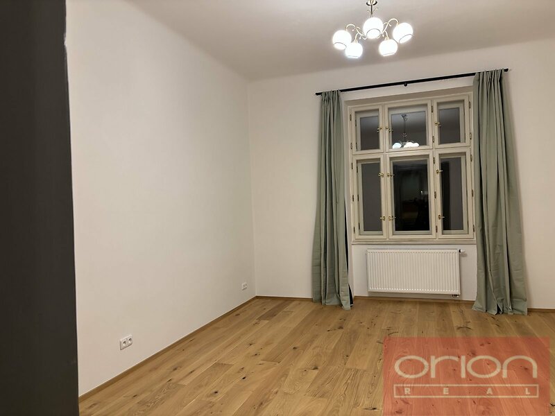Pronájem bytu v 1. patře secesního činžovního domu v klidné ulici v lokalitě Praha 3 - Žižkov, sousedící těsně s Vinohrady. Byt 1+1 má plochu 47,3 m² a nabízí předsíň, kuchyň s novou kuchyňskou linkou a spotřebiči (lednice s mrazákem, myčka nádobí, varná deska a trouba) a jídelním stolem se židlemi, dále velký pokoj (23m²), koupelnu se sprchovým koutem a toaletou. V bytě jsou dvě komory, v jedné je umístěn plynový kotel a pračka se sušičkou, druhou lze využít jako šatnu. Byt má vysoké stropy, v pokoji je dubová podlaha, v ostatních místnostech je dlažba. Dům je umístěn v oblíbené části Praha 3 - Žižkov, jen pár minut chůze od Náměstí Jiřího z Poděbrad a od parku Riegrovy sady. V místě je veškerá občanská vybavenost: obchody, restaurace, bary, pekárny, v blízkosti je také nákupní centrum Flóra. V krátké pěší dostupnosti je stanice metra Jiřího z Poděbrad, stanice tramvaje Olšanské náměstí anebo Vinohradská.