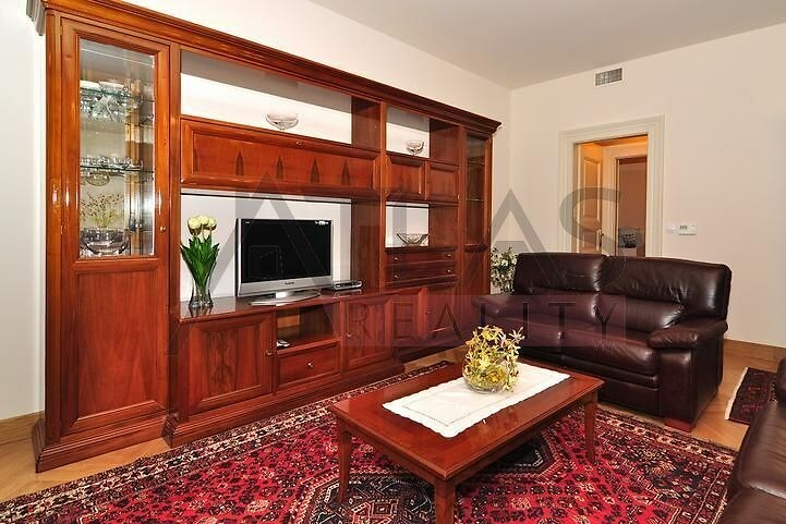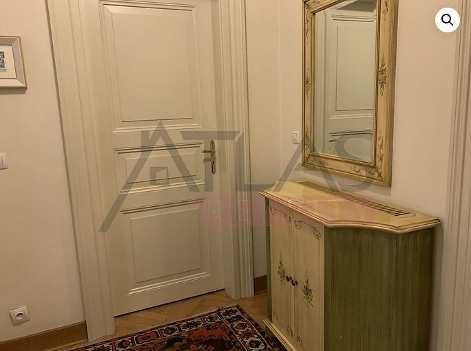 Pronájem kompletně zařízeného bytu 3+kk, 96 m2 v 1. patře s výtahem v prestižním klasickém secesním domě s vysokými stropy a originální výzdobou po kompletní rekonstrukci, která proběhla v roce 2006. Dům se nachází v residenční oblasti historického centra Prahy, jen 200 m od parku Riegrovy sady, 300 m od stanice metra trasy A Náměstí Míru a 500 m od Václavského náměstí stanice metra Muzeum trasy A a C a nákupního a kulturního centra Prahy. Byt je kompletně zařízen pseudostarožitným italským nábytkem. Obývací pokoj 45 m2, s kuchyňským koutem vybaveným lednicí s mrazákem, myčkou, plynovým sporákem, digestoří, dále dvě ložnice 16 m2 a 16 m2, koupelna s umyvadlem, rohovou vanou, WC a bidetem. Byt má telefonní linku, rychlý internet, TV, satelit, na podlahách parkety a dlažba, při rekonstrukci byly použity nadstandardní materiály. V domě jsou vybudovány podzemní garáže, výtah, na dvoře domu je velký bazén 8 x 11 m hluboký 1,2 metru s hydromasážním koutem, obklopený terasou a zelení. V domě je také kamerový systém, ostraha, správce a používání bazénu v ceně. Možnost pronájmu garáže.