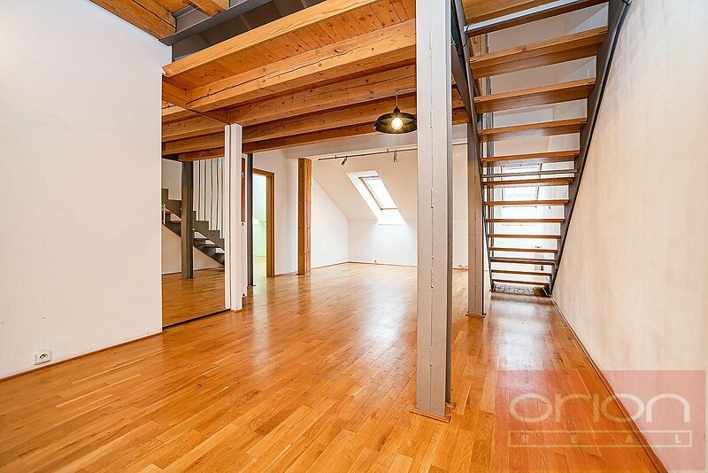 Pronájem mezonetového bytu 3+kk (114 m²) + terasa (20 m²) v činžovním domě s výtahem v oblíbené lokalitě v Praze 5 - Smíchov. Tento hezký byt má v nižším patře obývací pokoj spojený s jídelní částí a s plně vybavenou kuchyní (lednice s mrazákem, myčka, elektrická trouba, sklokeramická deska), ložnici, koupelnu s vanou, samostatnou toaletu a komoru s pračkou. V horním patře je galerie, ložnice, koupelna se sprchovým koutem a toaletou, velká terasa orientovaná do vnitrobloku. Na podlahách jsou parkety a dlažba. Tento hezký byt nabízí klidné bydlení na Praze 5, pouhých pár minut pěšky je nákupní centrum Nový Smíchov, stanice metra a tramvají Anděl, restaurace, obchody. Pro procházky a sportovní vyžití jsou nedaleko Petřínské sady, Smíchovská náplavka, park Kampa, Dětský ostrov s mnoha dětskými hřišti, sportovní centrum Erpet.