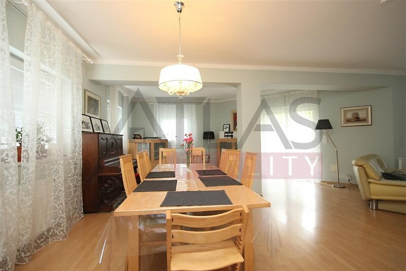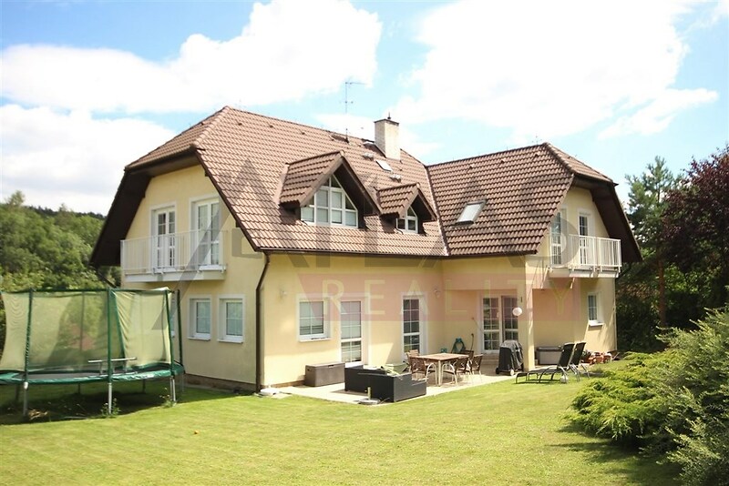 Pronájem novostavby rodinného domu 8+1, 303 m s velkou zahradou. Přízemí rozlehlý obytný prostor s krbem volně navazující na částečně krytou venkovní terasu, dále ložnici, hobby místnost, kuchyň (se sporákem, lednicí, mrazákem, myčkou), koupelnu a WC. První patro: 4 ložnice, pracovna, šatna, koupelna a WC. Na podlahách plovoucí podlahy a dlažba. V suterénu je garáž pro 2 4 automobily. Zahrada (850m2) umožňuje uživatelům nerušenou relaxaci a dostatečný prostor pro aktivní zábavu. Dům je situován v blízkosti mezinárodní školy s výhledem na les. Soukromá příjezdová cesta je zárukou absolutního klidu. Volný ihned.