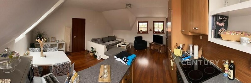 Pronájem zařízeného bytu 2+kk vhodného pro jednu osobu, nacházející se v prvním patře hezkého rodinného domu v Kouřimi. Dům je postaven na hradbách a nabízí krásný výhled do okolí a zároveň je umístěn v historickém centru města s veškerou občanskou vybaveností a dobrým spojením PID na Prahu a nově i na Kolín a blízká města. Parkování auta je možné před nebo za domem. Byt se nachází v podkroví domu s výhledem do krajiny a skládá se z ložnice, koupelny a z obývacího pokoje propojeného s kuchyňským koutem. V bytě je laminátová plovoucí podlaha a v koupelně dlažba. Byt je zařízen: ložnice s manželskou postelí, komoda. Koupelna s koupelnovým nábytkem (bez pračky, ale je zde možno ji připojit). Obývací pokoj s kuchyňským koutem s vestavěnými spotřebiči ( lednice, mrazák, sklokeramická varná deska, trouba, myčka, digestoř, volně stojící mikrovlnná trouba). V obývací části je rohová sedací souprava, konferenční a TV stolek., k dispozici je 6 židlí. Na chodbě je botník. V bytě je laminátová plovoucí podlaha a v koupelně dlažba. Celý byt je vytápěn teplovodním podlahovým vytápěním. Vytápění zajišťuje kondenzační plynový kotel se zásobníkem teplé vody. Vzhledem k použitým materiálům a kvalitnímu provedení stavby jsou v bytě nízké měsíční náklady na služby cca 3 4.000 Kč. Velkou úsporu tvoří teplovodní podlahové vytápění v celém bytě regulovatelné programovatelnými termostaty na každou místnost zvlášť. Vytápění zajišťuje kondenzační plynový kotel se zásobníkem teplé vody. V přízemí domu je garáž, jejíž pronájem není součástí nabízeného bytu, nelze parkovat vůz, ale v případě potřeby, je po dohodě s majitelkou domu, možno uskladnit kola nebo jiné sezonní věcí. Wifi v domě je již zavedena, poskytovatel O2, možnost sdílení za poplatek 300 Kč měsíčně. Byt je vhodný pro jednu osobu. Občanská vybavenost v okolí: škola, školka, ZUŠ, lékař, dětský lékař, pošta, banka, obchody, PID, knihovna, restaurace. Druhý byt v přízemí domu užívá majitelka domu pouze jako chatu k občasným krátkodobým pobytům. Město Kouřim je ideálním městem pro lidi, kteří se vyhýbají ruchu velkoměsta, ale vyžadují určitý komfort. Byt je volný po dohodě ihned a prohlídky jsou možné po předchozí dohodě.