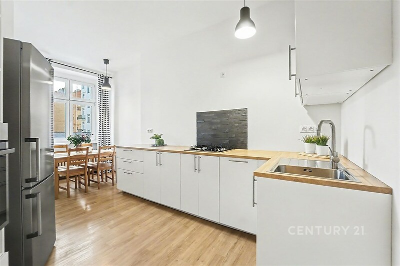 Prostorný (82 m2) světlý (orientace jihozápad/východ) byt 2+1 po celkové rekonstrukci z roku 2019 se sklepem (3 m2) ve druhém patře udržovaného rekonstruovaného domu s výtahem, jen 2 min. od stanice metra a tramvají Vltavská s budoucím výhledem na budovu Vltavské filharmonie v atraktivní rozvíjející se části Prahy 7 vyhledávané čtvrti Holešovice. Klasická dispozice 2+1 typická pro starší zástavbu s orientací kuchyně (14 m2) na východ do vnitrobloku a obou obytných pokojů (25 a 22 m2) na jihozápad s výhledem na město, Petřín, řeku Vltavu a v budoucnu (2033) výjimečnou budovu Vltavské filharmonie, které se stane nejen kulturním symbolem, ale také klíčovým akcelerátorem rozvoje transformačního území Holešovice BubnyZátory. Její výstavba spolu s revitalizací přilehlého okolí promění lokalitu Vltavská v moderní městskou čtvrť, která nabídne kvalitní bydlení, občanskou vybavenost spolu se stávající vynikající dopravní dostupností MHD. V rámci rekonstrukce bytu byly instalovány nové rozvody elektřiny, vody, odpadu a položeny nové podlahy (plovoucí laminátová podlaha položena na původní parkety). Nově byla vybudována koupelna s vanou a samostatné WC vč. obkladů, sanity, baterií a pořízena byla i nová pračka. Nově byla též kuchyně včetně kuchyňské linky se spotřebiči (el. trouba, plynový sporák, myčka, lednice s mrazákem). Okna jsou plastová. V bytě se nachází také praktická komora (4 m2) a malý sklad např. na potraviny (0,5 m2) Dům byl částečně rekonstruován vč. zateplení, výměny stoupaček, rekonstrukce sklepů a domovní plynové kotelny, která zajišťuje dodávku tepla i teplé vody do bytů. Neváhejte kontaktovat makléře pro prohlídku bytu v rozvíjející se čtvrti v lokalitě s investičním potenciálem.