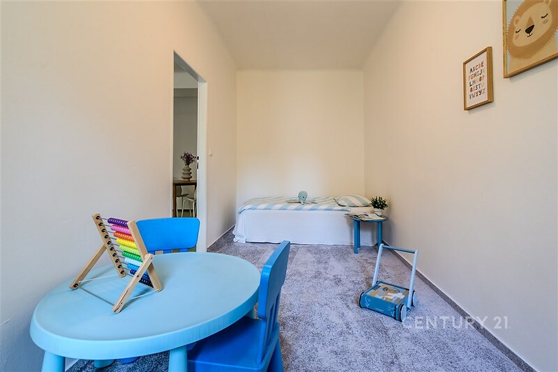 Prostorný a světlý byt s balkonem, příroda i centrum na dosah. Nabízíme k pronájmu byt 3+1 o užitné ploše 64,7 m², který se nachází ve 2. nadzemním podlaží zatepleného cihlového domu v klidné zástavbě nízkopodlažních budov obklopených zelení. Byt je ve výborném stavu a díky své orientaci působí velmi světlým a příjemným dojmem. Dominantou bytu je prostorný obývací pokoj situovaný na jih s francouzským oknem a vstupem na balkon, z něhož je krásný výhled do klidu se zeleně. Samostatná kuchyň je plně vybavena. Ložnice i dětský pokoj poskytují dostatek prostoru pro pohodlné rodinné bydlení. Praktické je také oddělené WC a koupelna, obě místnosti jsou plně vybavené. K bytu náleží sklep a k dispozici jsou i společné prostory včetně kočárkárny. Samotný dům se nachází v klidné části Kladna, kde je v pěší vzdálenosti kompletní občanská vybavenost. Autobusová zastávka MHD je jen 3 minuty od domu, vlaková stanice s přímým spojením do Prahy přibližně 10 minut chůze. Autem jste na okraji Prahy do 15 minut. Milovníky přírody potěší blízké lesoparky protkané cyklostezkami, které vedou až do CHKO Křivoklátsko. Pokud hledáte komfortní bydlení v klidné lokalitě s výbornou dostupností do Prahy i do přírody, rádi vás pozveme na osobní prohlídku. Nájemné 19.500 Kč/měs., poplatky 2 osoby cca 5.500Kč/měs., elektřina převod na nájemníky, kauce 30.000 Kč, provize RK 19.500 Kč.