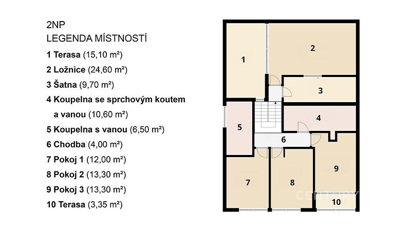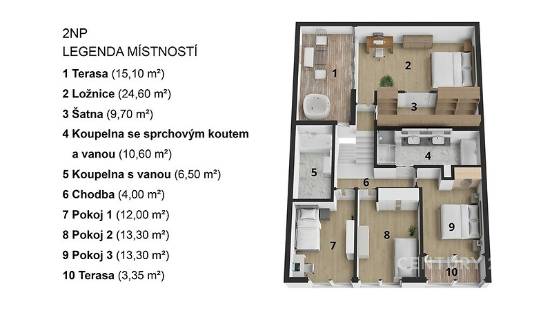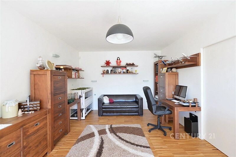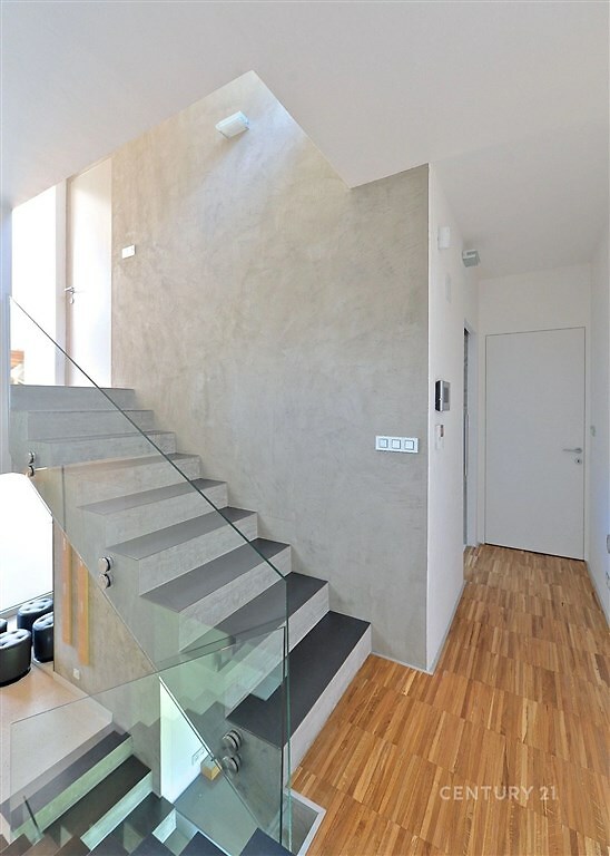 Rádi byste bydleli v moderním domě v uceleném rezidenčním projektu u rybníka, lesa a zároveň do půl hodiny autem do širšího centra Prahy? Poté resort rodinných domů Terasy Unhošť navržený uznávaným architektonickým studiem A69 architekti s.r.o. by mohl být tou pravou volbou pro Vás. Tento rodinný dům o dispozici 5+kk kolaudovaný v roce 2012 má užitnou plochu 158 m², k tomu zahradu o velikosti 224 m², dvě prostorné terasy a dvougaráž pro 2 auta. Dům se nachází na prestižní adrese, v nejžádanější řadě největších domů celého resortu směřující k rybníku v poslední ulici Terasy V. Dům je dvoupodlažní, respektive originálně navržený jako "zigzag" mezipatra. Srdcem domu je velkoryse řešený obývací prostor s krbem na dříví a kuchyňským koutem nádherně prosvětlený díky velkoformátovým francouzským oknům po celé délce stěny, které umožňují přímý vstup na zahradu přes slunnou terasu a široké výhledy do bohaté zeleně přes zahradu a rybník do dáli. U vstupu do domu je předsíň a samostatná toaleta a vstup do obývací části. Po pár schodech se dostanete do mezipatra, kde jsou vedle sebe umístěné 3 téměř stejně velké pokoje s okny směřujícími do zahrady, jeden z nich s terasou. Dále jsou v mezipatře 2 koupelny se sanitou značky Duravit a Sapho, jedna velká s vanou a sprchovým koutem po celé šíři koupelny, druhá s vanou a toaletou. V nejvyšší úrovni domu se ukrývá ložnice s walkin šatnou a přímým vstupem na terasu, která nabízí úplné soukromí, ideální prostor pro umístění vířivky a odpočinkových lehátek. Zahrada je osazena keři a menšími stromy, je navržená jako bezúdržbová, s automatickým zavlažováním ovládaným na dálku a díky rovinatému povrchu se o sekání trávy postará robotická sekačka. Na procházku k rybníku je to z domu pouhých pár kroků díky vstupu přes uzamykatelnou branku přímo ze zahrady. Dům je postaven z nadstandardních materiálů, ve výrazně vyšším standardu než později postavené řady menších domů od ulice Křivoklátská, navazující na tento původní projekt Terasy Unhošť. Komfort bydlení zvyšují předokenní žaluzie, podlahové vytápění, hliníkové rámy oken a celkové praktické rozvržení místností tak, aby bylo pro všechny zajištěno soukromí v maximální míře. Vytápění domu a ohřev vody zajišťuje plynový kotel značky Vaillant. Město Unhošť je pouhých 15 minut od Prahy díky rychlému spojení dálnicí, na metro Zličín do 20 minut, do Kladna za 10 minut. Autobusové spoje mezi Prahou a Unhoští jsou zajištěny několikrát denně. Je zde kompletní občasná vybavenost, od školek a základních škol, přes lékaře a několik restaurací a kaváren, supermarkety jako Penny market a Lidl až po bohaté sportovní vyžití. Splňuje tento dům představu o Vašem novém domově? Ozvěte se mi a domluvme se na prohlídce, při které nejlépe navnímáte toto jedinečné místo, které se může stát Vaší oázou klidu a bezpečným domovem.