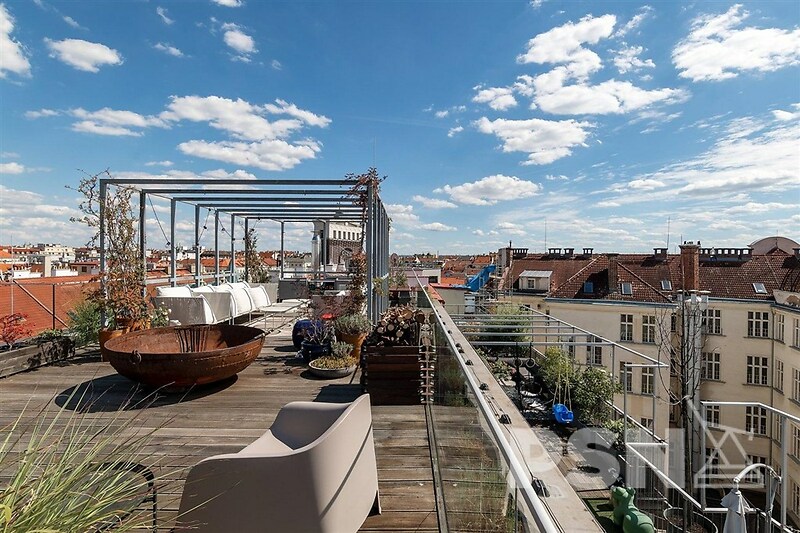 Residence Laubova se nachází v klidné části Vinohrad na Praze 3 v blízkosti metra A Jiřího z Poděbrad. Dům prošel kompletní rekonstrukcí včetně nového výtahu. Možnost parkování přímo v domě. Interiér bytů od architektonického studia Design by Donlic. Nabízíme k pronájmu nádherný prostorný mezonetový byt 4+kk, kde celková plocha bytu vč. tří teras je 454 m2. Obytná plocha bytu je 260,5 m² a jsou zde tři terasy o celkové ploše 193,5 m² s nádhernými výhledy. Střešní terasa s krásným výhledem na kostel na Jiřího z Poděbrad. V bytě se nachází obývací pokoj o rozloze 101m² s luxusní kuchyňskou linkou s vestavěnými spotřebiči a vstupem na terasu, v horním patře bytu jsou 3 ložnice, dvě koupelny s vanou, toaleta zvlášť, prostorná šatna a vstup na střešní terasu. K dispozici je pračka a sušička. Vestavěné skříně, dřevěné podlahy, bezpečnostní dveře, zabudované stropní osvětlení, alarm s možností napojení na PCO, videotelefon.