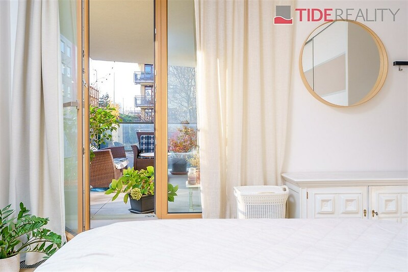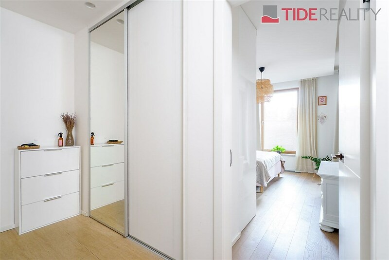 REZERVACE! Slunný byt s terasou, sklepem a garáží v moderní rezidenci, Praha 4, ul. Pod Děkankou Prestižní bydlení na dobré adrese! Světlý, příjemný byt 2+kk s terasou, situovaný ve 2. patře prémiové rezidence 4U Living na hranici oblíbené vilové čtvrti Podolí v docházkové vzdálenosti od metra Pražského povstání. Tento prostorný, dispozičně velice dobře řešený byt 2+kk tvoří rohový obývací pokoj s plně vybaveným kuchyňským koutem a přímým vstupem na jihozápadně orientovanou terasu, velká ložnice s vestavěnou skříní, designová koupelna a vstupní předsíň. Dostatek úložného prostoru. Celková vnitřní plocha bytu činí 56 m2 + 10 m2 plocha terasy. Ložnice je orientována na jihovýchod, obývací pokoj na jihozápad – obě místnosti směřují do tichého vnitrobloku a mají vstup na terasu. Výška stropu v obytných místnostech činí 270 cm! Vysoký standard domu i bytu zahrnuje recepci, kamerový systém, velkoformátová dřevohliníková okna Josko, podhled s integrovaným podsvícením v obývacím pokoji a ložnici, konvektory v obytných místnostech, třívrstvé dřevěné lepené podlahy, zakázkové dveře s výškou 220 cm aj. K bytu navíc náleží zděný sklep o výměře 3 m2, který je zahrnutý v ceně nemovitosti. Součástí prodeje je jedno parkovací stání v podzemní garáži, které není zahrnuto v prodejní ceně a činí 650 000 Kč. Nábytek není součástí prodeje! Rezidence je dílem renomované architektky Báry Škorpilové a nabízí atraktivní a designové bydlení na okraji vilové čtvrti, přitom jen 200 metrů od metra. Lokalita patří k nejvyhledávanějším v Praze. V pěší vzdálenosti se nachází Vyšehrad, podolské nábřeží, parky, sportoviště, kavárny a obchody pro každodenní potřebu (pekárna, masna, zelenina, domácí potřeby, DM, květinářství, obchod pro mazlíčky aj.). Sjednejte si prohlídku a sami posuďte jedinečnost této nemovitosti!