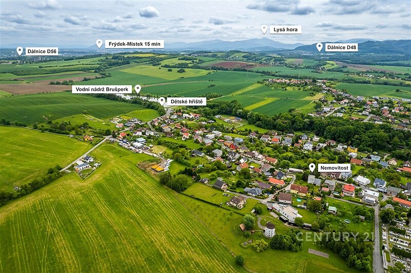 REZERVOVÁNO! V exkluzivním zastoupení majitele Vám nabízím na prodej rodinný dům v městečku Brušperk na Frýdeckomístecku, v malebné lokalitě v blízkosti podhůří Beskyd. Celková plocha pozemku je 1240 m2, zastavěná plocha činí 302 m2. Dům má dvě nadzemní podlaží a je kompletně podsklepený. V přízemí se nachází kuchyně, obývací pokoj, komora a toaleta. V prvním patře jsou dva průchozí pokoje a koupelna. Z chodby je vstup na malý balkónek a také vstup na střechu garáže. Dům postaven v 50. letech, je cihlový, nezateplený. Původní dřevěná špaletová okna, podlahy – parkety a dřevo, původní rozvody. Střecha plochá, pozink a lepenka, oprava proběhla v roce 2024. K domu přiléhá garáž o velikosti 63 m2, původně postavená pro dva nákladní vozy, později využívaná jako dílna. Do domu jsou přivedeny veškeré inženýrské sítě. Celý pozemek je oplocený, na zahradě, která má plochu více než 900 m2 jsou ovocné stromy, v přední části jehličnany a keře. Za domem je dřevník a jímka na dešťovou vodu. Na rekonstrukci a opravu domu lze využít dotační programy (dotace na výměnu zdroje tepla, zateplení, výměnu oken, dveří a další). Brušperk leží v nádherné krajině na dohled od Beskyd, vedou zde cyklostezky, na okraji města je vodní nádrž s pláží, stánky a odpočinkovou plochou. Pro další informace mě prosím kontaktujte.