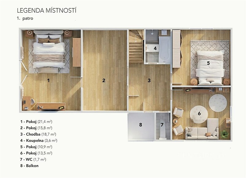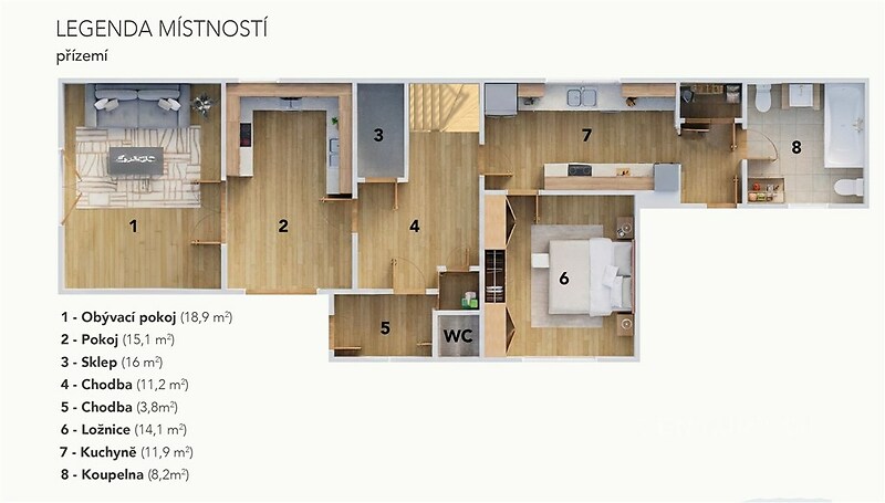 Rodinný dům 6+1 | Třebotov 106 | klidná lokalita u Prahy Nabízíme k prodeji prostorný rodinný dům o dispozici 6+1 v obci Třebotov, okres Prahazápad. Nemovitost se nachází v klidné rezidenční části obce a představuje ideální kombinaci komfortního bydlení, soukromí a bezprostřední blízkosti přírody s výbornou dostupností do Prahy. Základní informace o nemovitosti Stav: původní, určený k rekonstrukci Dispozice: 6+1 Užitná plocha domu: cca 169 m² Podlahová plocha: cca 185 m² Sklep: 16 m² Počet podlaží: 2 + sklep Dům nabízí možnost dvougeneračního bydlení, případně kombinaci bydlení a podnikání. Popis domu Dispozičně velmi dobře řešený dům poskytuje dostatek prostoru i soukromí pro vícečlennou rodinu. V přízemí se nachází obytná část s kuchyní, obývacím pokojem, ložnicí, koupelnou a technickým zázemím. V patře jsou další samostatné pokoje, koupelna a WC. Sklepní prostory o velikosti 16 m² jsou vhodné pro skladování, technické zázemí nebo hobby využití. Pozemek – investiční a stavební potenciál Nemovitost se nachází na rozsáhlém pozemku, který nabízí: dostatek prostoru pro soukromou zahradu a relaxační zónu, možnost vybudování bazénu, potenciál výstavby dalšího rodinného domu Dům je vhodný jak pro rodinné bydlení, tak pro kombinaci bydlení a podnikání, případně jako reprezentativní sídlo firmy. Prémiový popis lokality – Třebotov Třebotov je vyhledávaná obec v okrese Prahazápad, ležící přibližně 18 km jihozápadně od centra Prahy a 4 km od Černošic. Obec má přibližně 1 500 obyvatel a dlouhodobě patří mezi velmi atraktivní rezidenční lokality. Lokalita nabízí klid venkova, minimální dopravní zatížení a přímý kontakt s přírodou, zároveň však zajišťuje rychlou dostupnost města. Třebotov se nachází v těsné blízkosti CHKO Český kras, jedné z nejcennějších přírodních oblastí v ČR. 10 důvodů, proč bydlet v Třebotově Klidná obec v bezprostřední blízkosti Prahy Výborná dostupnost – Smíchov cca 15–20 minut CHKO Český kras doslova za domem Blízkost řeky Berounky a cyklostezek Karlštejn, lomy Amerika a Svatý Jan pod Skalou v dojezdu Bezpečné, rodinné a komunitní prostředí Škola, školka, hřiště a sportoviště v obci Kompletní občanská vybavenost v Radotíně a Černošicích Minimum průmyslu a tranzitní dopravy Stabilní a dlouhodobě žádaná lokalita s investičním potenciálem Přírodní krásy a volnočasové aktivity v okolí Velký a Malý lom Amerika – unikátní vápencové lomy s tyrkysovou vodou Řeka Berounka – cyklostezky, vodní sporty, relax Karlštejn – historická dominanta regionu Prokopské a Radotínské údolí – ideální pro pěší i cyklovýlety Svatý Jan pod Skalou – jedno z nejkrásnějších míst Českého krasu Rozsáhlé lesy, houbaření, běh, turistika Dopravní dostupnost Praha – Smíchov: cca 15–20 minut autem Pravidelné autobusové spojení Rychlé napojení na Pražský okruh a D5 Shrnutí Tato nemovitost představuje výjimečnou příležitost pro ty, kteří hledají klidné a kvalitní bydlení v prestižní lokalitě s rychlou dostupností Prahy. Vhodné jak pro rodinné bydlení, tak jako dlouhodobá investice.