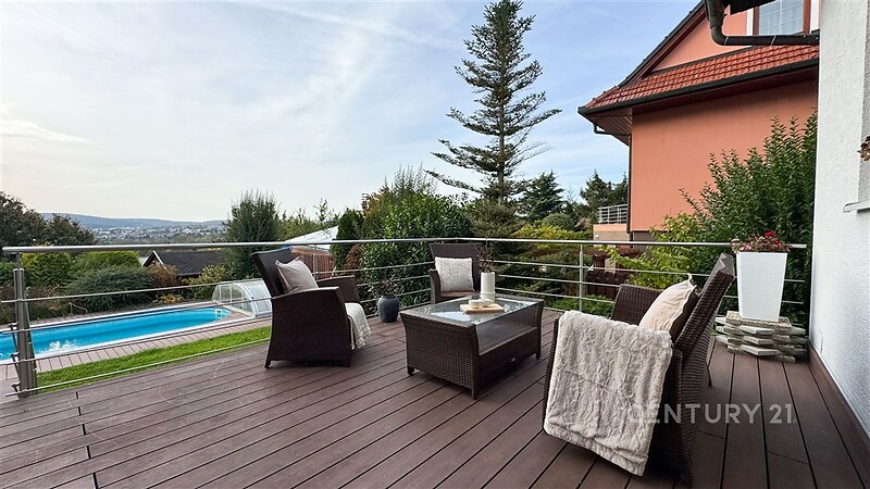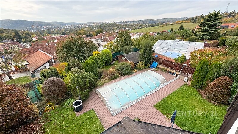 Rodinný dům s duší a výjimečným výhledem – klid, prostor a pohodlí u Brněnské přehrady. Hledáte místo, kde se snoubí luxus, soukromí a pocit domova? Tento jedinečný rodinný dům v tiché, slepé ulici nedaleko Brněnské přehrady nabízí vše, o čem jste kdy snili. Místo, kde vás ráno probudí zpěv ptáků, odpoledne si vychutnáte kávu na terase s dechberoucím výhledem a večer zakončíte sklenkou vína ve vinném sklípku či u praskajícího krbu. Dům o třech podlažích, zkolaudovaný v roce 2005 a kompletně zrekonstruovaný v roce 2016, nabízí ideální propojení elegance, kvality a funkčnosti. Najdete zde 6 komfortních ložnic, 3 koupelny, moderní kuchyni s jídelnou, prostorný obývací pokoj s krbem, pracovnu s herním koutem (stolní tenis, kulečník), šatnu, prádelnu, dvě skladovací místnosti, posilovnu a stylový vinný sklep. Každý kout domu byl navržen s důrazem na detail, praktičnost a příjemnou atmosféru. O teplo domova se stará kondenzační plynový kotel Geminox doplněný o elektrokotel, podlahové vytápění v koupelnách a dva krby, které dodávají interiéru útulnost a charakter. V létě oceníte tři klimatizační jednotky Mitsubishi, které jsou pravidelně servisovány. Samozřejmostí je moderní zabezpečovací systém Jablotron a bezpečnostní čidlo CO₂, které zajišťují váš klid a bezpečí. Dům se nachází v klidné slepé ulici, kam zajíždějí pouze rezidenti – ideální místo pro rodinu s dětmi nebo pro ty, kteří hledají nerušené soukromí. Na udržované zahradě najdete zastřešený venkovní bazén se sprchou, ohniště s posezením a dostatek prostoru pro odpočinek i zábavu. Garáž pro dva vozy je vybavena moderním vestavným úložným systémem. Nemovitost je plně vybavena vestavěným i volně stojícím nábytkem, takže se můžete okamžitě nastěhovat a začít si užívat nový domov bez dalších starostí. Vše je pečlivě udržované, v perfektním technickém stavu a připravené poskytnout novým majitelům maximální komfort. Brněnská přehrada, krásná příroda, cyklostezky i možnosti sportovního vyžití jsou doslova na dosah ruky. Přesto zůstává dům v těsné blízkosti města – centrum Brna je vzdáleno jen pár minut jízdy a autobusová zastávka se nachází 100 m od domu. Tato kombinace klidu, soukromí a výborné dostupnosti dělá z této nemovitosti mimořádně atraktivní místo pro život.