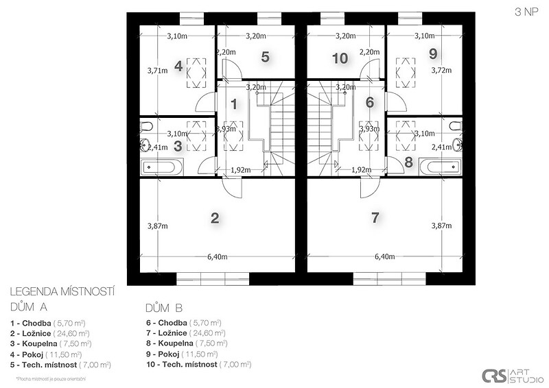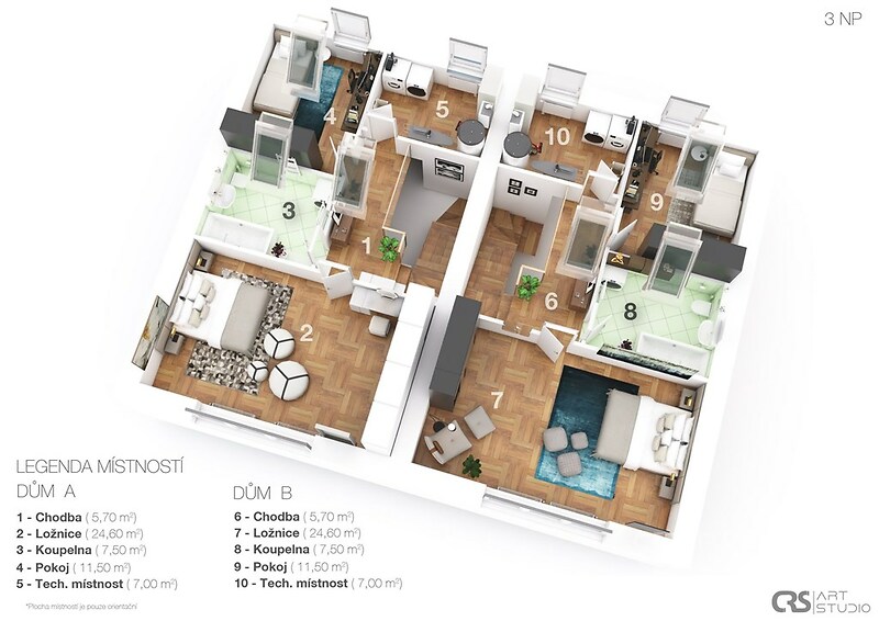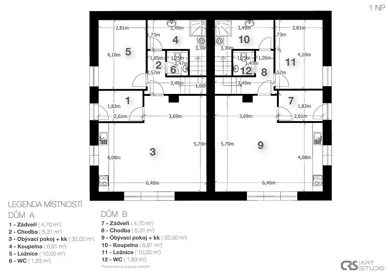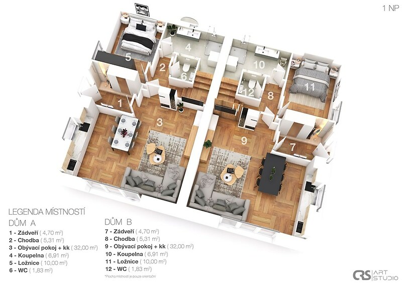 Rodinný dům se nachází v klidné rezidenční části Nad Vinicemi v Benátkách nad Jizerou. Nabízí otevřený a ničím nerušený výhled do okolní krajiny a pocit prostoru, klidu a soukromí. Moderní rodinný dům byl kolaudován v roce 2014 a je vhodný jak pro více generační bydlení, tak jako investiční příležitost s možností pronájmu jednotlivých bytových jednotek. Dispoziční řešení: Nemovitost má dvě samostatné poloviny, přičemž každá z nich obsahuje dvě bytové jednotky s dispozicemi 2+kk a 3+1. Celkem tak dům nabízí čtyři samostatné bytové jednotky, které lze využívat odděleně nebo je vzájemně propojit dle potřeb nového majitele. Dům má tři nadzemní podlaží. Základní údaje: • celková užitná plocha: 393 m² • obytná plocha: 352,8 m² • sklepní prostory: 40 m² • pozemek: 881 m² • zahrada: 716 m² • parkování: 6 parkovacích míst Interiér: Interiér domu působí světle, vzdušně a nadčasově. Prostor je charakteristický dřevěnými podlahami, přiznanými dřevěnými trámy a dostatkem denního světla, které vytvářejí příjemnou a klidnou atmosféru. Technické zázemí: Dům je napojen na veřejný vodovod, elektřinu a plyn. Vytápění je řešeno plynovým kotlem, který taktéž zabezpečuje ohřev teplé vody. V bytech 2+kk jsou navíc krbové vložky. Součástí domu jsou sklepní prostory, které poskytují dostatek místa. Pozemek a okolí: Pozemek o výměře 881 m² nabízí dostatek prostoru pro vytvoření zahrady a venkovního zázemí dle vlastních představ. Vyšší poloha domu zajišťuje jak výhled, tak i pocit soukromí v rámci rezidenční zástavby. Lokalita: Benátky nad Jizerou poskytují kompletní občanskou vybavenost – školy, školky, obchody, restaurace i zdravotnická zařízení. Lokalita má dobrou dopravní dostupnost a zároveň si zachovává klidný rezidenční charakter. Více informací vám poskytne realitní makléř, který vás zároveň rád osobně pozve na prohlídku tohoto moderního výjimečného domu.