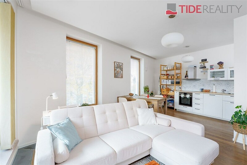 Slunný byt s terasou, sklepem a garáží v moderní rezidenci, Praha 4, ul. Pod Děkankou Prestižní bydlení na dobré adrese! Světlý, příjemný byt 2+kk s terasou, situovaný ve 2. patře prémiové rezidence 4U Living na hranici oblíbené vilové čtvrti Podolí v docházkové vzdálenosti od metra Pražského povstání. Tento prostorný, dispozičně velice dobře řešený byt 2+kk tvoří rohový obývací pokoj s plně vybaveným kuchyňským koutem a přímým vstupem na jihozápadně orientovanou terasu, velká ložnice s vestavěnou skříní, designová koupelna a vstupní předsíň. Dostatek úložného prostoru. Celková vnitřní plocha bytu činí 56 m2 + 10 m2 plocha terasy. Ložnice je orientována na jihovýchod, obývací pokoj na jihozápad – obě místnosti směřují do tichého vnitrobloku a mají vstup na terasu. Výška stropu v obytných místnostech činí 270 cm! Vysoký standard domu i bytu zahrnuje recepci, kamerový systém, velkoformátová dřevohliníková okna Josko, podhled s integrovaným podsvícením v obývacím pokoji a ložnici, konvektory v obytných místnostech, třívrstvé dřevěné lepené podlahy, zakázkové dveře s výškou 220 cm aj. K bytu navíc náleží zděný sklep o výměře 3 m2, který je zahrnutý v ceně nemovitosti. Součástí prodeje je jedno parkovací stání v podzemní garáži, které není zahrnuto v prodejní ceně a činí 650 000 Kč. Nábytek není součástí prodeje! Rezidence je dílem renomované architektky Báry Škorpilové a nabízí atraktivní a designové bydlení na okraji vilové čtvrti, přitom jen 200 metrů od metra. Lokalita patří k nejvyhledávanějším v Praze. V pěší vzdálenosti se nachází Vyšehrad, podolské nábřeží, parky, sportoviště, kavárny a obchody pro každodenní potřebu (pekárna, masna, zelenina, domácí potřeby, DM, květinářství, obchod pro mazlíčky aj.). Sjednejte si prohlídku a sami posuďte jedinečnost této nemovitosti!