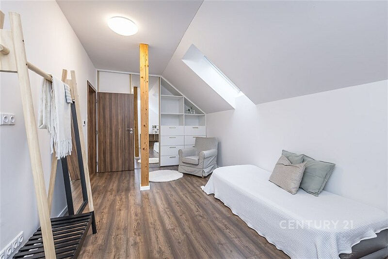Sníte opustit ruch velkoměsta, ale stále být blízko Prahy? Žít v luxusním řadovém domě s velkou zahradou? Rádi hrajete golf, nebo byste chtěli začít? Jestli ano, nabízíme Vám novostavbu krásného řadového domu o dispozici 4+kk s vlastní zahrádkou, balkonem a dvěmi parkovacími místy. Jedná se o jeden ze tří rodinných domů v lukrativní lokalitě Vysoký Újezd u Prahy. Rodinný dům je připraven k nastěhování. Kuchyně, která je společná s obývacím pokojem je vybavena vysoce kvalitními spotřebiči Haier. Velká americká lednice, indukční deska, výkonná digestoř a myčka je samozřejmostí. Z opravdu světlé obývací části, budete mít krásný výhled na vlastní zahradu a v noci Vám budou dokonce dotvářet atmosféru světla metropole. V každém ze dvou pater se nalézá koupelna s toaletou. V přízemí se sprchou a v patře s vanou. V přízemí dále naleznete chodbu a technickou místnost. V prvním patře pak dva dětské pokoje a ložnici včetně šatny. Určitě oceníte velkorysé úložné prostory včetně půdního prostoru. Zahrada je za domem a nabízí tak příjemné soukromý. K zalévání zahrady lze využívat voda z retenční nádrže. Dům byl stavěn ve vysokém standartu a nízkoenergeticky (PENB B). Vytápění je řešeno infračervenou podlahovou fólií, kterou můžete ovládat pohodlně i na dálku na Vašem mobilním telefonu. Takto můžete ovládat i elektrický kotel s integrovaným tepelným čerpadlem. Veškeré spotřebiče jsou ve třídě A+. Vysoký Újezd je velmi žádanou lokalitou pro svůj klid, ale zároveň blízkost do metropole. Díky svému umístění se dostanete na Zličín během 15 minu. Obec Vysoký Újezd leží za jihozápadním okrajem Prahy ve směru na Beroun. Díky dálnici D5 je Praha v ideální dojezdové vzdálenosti a v druhém směru se obyvatelům obce otevírá čistá příroda Českého krasu. V docházkové vzdálenosti se nachází jedno z nejprestižnějších golfových resortů Golf Albatross. Dalšími benefity této lokality je několik mateřských školek, školy, obecní úřad, pošta, kavárna, restaurace, pizzerie (autentická Neapolská), obchod Žabka, obchod s lahůdkami, kosmetika a manikúra, hotel s wellness, fitness centrum, dětská hřiště. V docházkové vzdálenosti je také zastávka autobusu (311, 30 minut na metro Zličín). Do nejbližší školky a základní školy mohou děti dojít zadní brankou, aniž by křižovali veřejné komunikace. Máteli zájem o více informací nebo osobní prohlídku, neváhejte mě kontaktovat. Ráda vás touto nemovitostí osobně provedu.