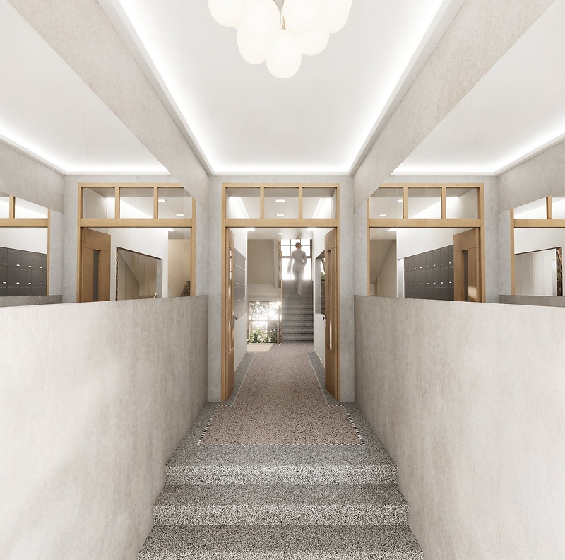 Světlý byt o dispozici 2+kk a podlahové ploše 50.40 m² je součástí projektu Želivského 3, který přináší moderní městské bydlení do tradiční žižkovské zástavby. Dům po kompletní rekonstrukcí nabízí komfortní, praktický domov pro každodenní městský život. Půdorys bytu ve 4. podlaží zahrnuje obývací pokoj s přípravou na kuchyňskou linku, samostatnou ložnici, vstupní chodbu a koupelnu s toaletou. K jednotce náleží sklepní kóje, která poskytuje praktický úložný prostor navíc. Byt je dokončen v provedení fit out – s novou dřevěnou podlahou a nadčasovou koupelnou vybavenou sanitou značek Laufen a Grohe. Rekonstruovaný dům nabízí klidný vnitřní dvůr se zelení a posezením, prádelnu i malé fitness. Společné prostory po kompletní obnově vytvářejí moderní prostředí odpovídající současným standardům bydlení. Projekt Želivského 3 se nachází v zavedené části Žižkova, jen pár kroků od tramvajové zastávky Nákladové nádraží Žižkov. V okolí je vše, co k městskému životu patří – oblíbené kavárny, restaurace, služby i parky Parukářka a Vítkov. Na metro Želivského se dostanete během několika minut, do centra města pak zhruba za deset.