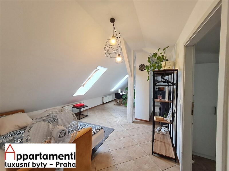 Tento podkrovní ateliér o velikosti 58,2m2 má jednu ložnici, prostorný obývací pokoj s kuchyňským koutem a s koupelnou se sprchovým koutem toaletou a bidetem, umyvadlem. Ve společných prostorách je balkón. Apartmán se nalézá přímo v historickém srdci hlavního města Prahy, v blízkosti Václavského náměstí. V současné době je dlouhodobě pronajímán a představuje tak vynikající investiční příležitost.