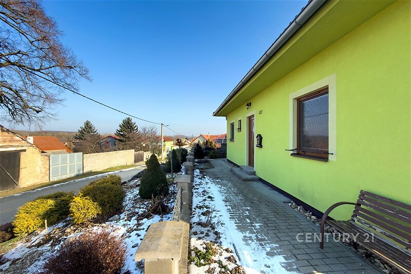 Tento rodinný dům se nachází v malebné vesnici Borotice, známé svou poklidnou atmosférou a výbornou dopravní dostupností. Dům byl postaven v roce 2015 a nabízí komfortní bydlení ve vynikajícím stavu na parcele o celkové rozloze 590 m². Dispozice domu je 3+kk a užitná plocha 64 m². Podrobněji se podívejte na půdorys domu. K domu přijedete po vydlážděném nájezdu, který odděluje brána. ▲vstupní chodba 3,54 m² ▲ WC 1,26 m² ▲ koupelna se sprchovým koutem 5,04 m² ▲ obývací pokoj a kuchyňský kout 22,52 m² ▲ spíž 2,71 m² ▲ pracovna 12,27 m² ▲ ložnice 12,27 m² Prostorná zahrada o rozloze 512 m² je ideální pro rodinné aktivity a relaxaci, doplněna je i o krytou terasu o rozloze 12 m², která poskytuje prostor pro odpočinek nebo venkovní stolování. Na zahradě se také nachází zahradní domek a skleník. Celá zahrada je oplocena viz fotografie a video prohlídka. Dům je postaven z kvalitních materiálů s dřevěnou konstrukcí, což podtrhuje jeho přírodní charakter a zajišťuje dobrou izolaci. ▲ PENB energetický štítek třídy C. V obývacím pokoji jsou krbová kamna. V pokojích pak el. přímotopy. V koupelně je el. bojler na ohřev vody a el. topný žebřík. Dům je napojen na obecní kanalizaci. Plyn není do domu přiveden. Interiér domu je částečně zařízen a nabízí příjemné bydlení s veškerým komfortem. ▲ Součástí nemovitosti je sklep 10 m², který poskytuje další úložné prostory. ▲ Dalším bonusem k domu je funkční studna/vrt v hloubce 30 m, kde je vloženo ponorné čerpadlo. Ze studny jde rozvod vody na zahradu a dvorek. Doprava a přístupové cesty k domu jsou na vysoké úrovni; v blízkosti se nacházejí zastávky městské dopravy, a také přímý přístup k první třídě silnice, který umožňuje snadný přístup do okolních měst Znojmo 10 min, Brno 35 min. Lokalita dále nabízí bohaté možnosti pro turistiku a venkovní aktivity v okolním čistém a otevřeném prostoru venkovského charakteru. Kupující může využít možnost financování hypotékou. S financováním Vám pomůže náš hypoteční poradce. Dům je ihned k nastěhování. V případě dalších informací mě již nyní kontaktujte.