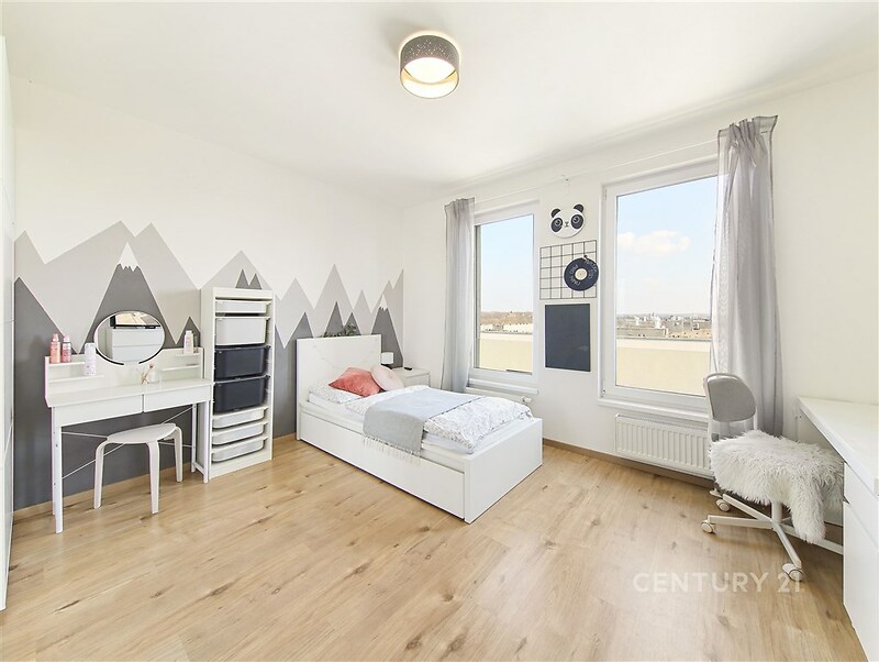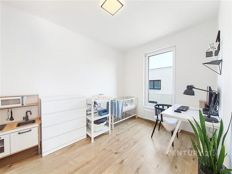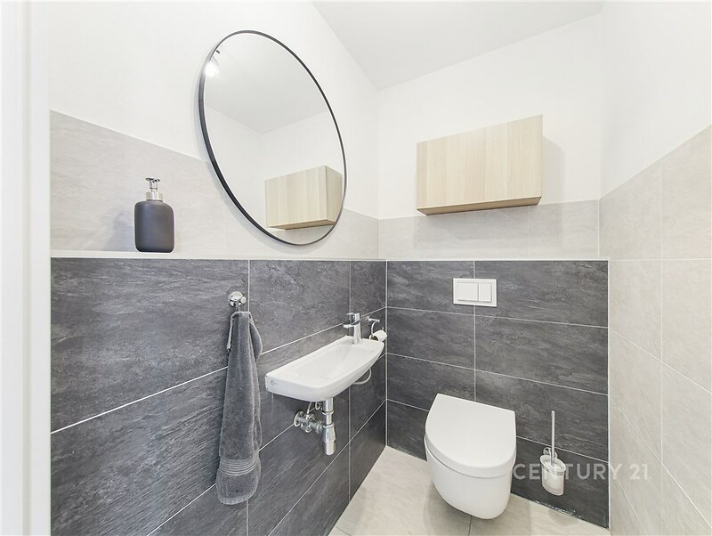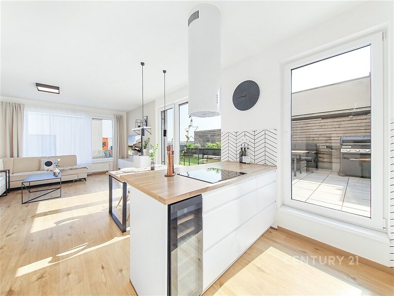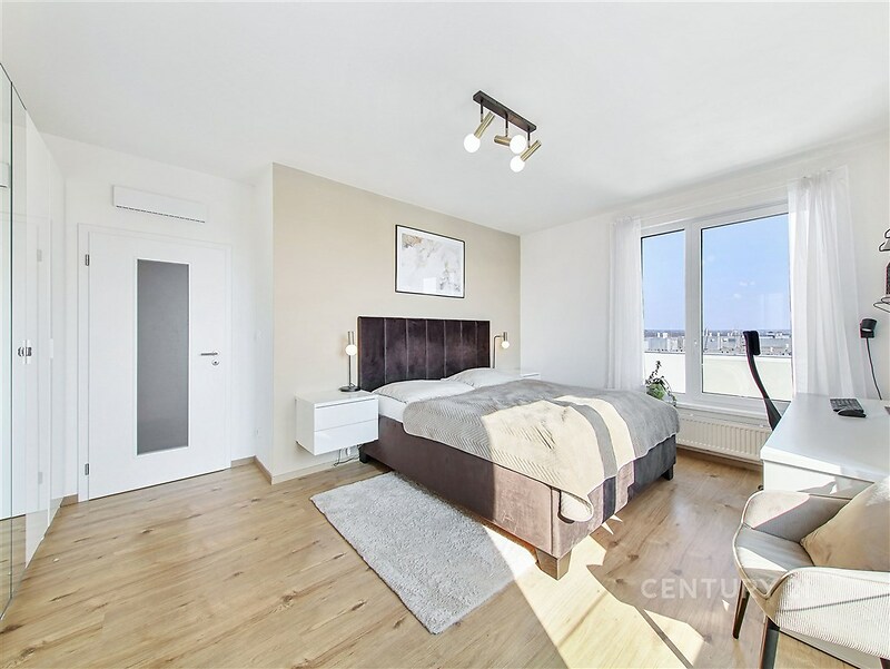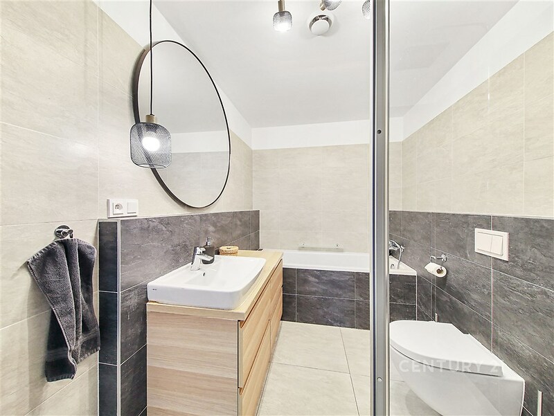 Úžasný byt 4+kk s terasou a dvěma garážovými místy v cihlové novostavbě z roku 2020 v Dolních Počernicích. Byt má obytnou plochu 117 m² rozdělenou do dvou podlaží a je orientovaný na jih a východ. Obývací pokoj s kuchyňským koutem má přímý vstup na velkou jižně orientovanou terasu. Kuchyň je vyrobena na míru, s lakovanými dvířky a vybavena moderními spotřebiči Electrolux (varná deska, myčka, trouba, mikrovlnná trouba, lednice, digestoř Guzzanti). Ve spodním patře se dále nachází pracovna/pokoj, komora a toaleta s umyvadlem. Druhé podlaží bytu se skládá ze dvou prostorných ložnic, koupelny s vanou, sprchovým koutem a toaletou a komory pro pračku a sušičku. Dům je zateplený, má velkoformátová okna s trojskly a s dálkově ovládanými předokenními žaluziemi. Podlahy jsou vinylové a v koupelnách a v předsíni je dlažba. K bytu patří dvě garážová stání v suterénu domu a komora přímo na patře vedle bytu. Dům je vybaven výtahem a v přízemí je k dispozici společná kolárna/kočárkárna. Přímo u domu je dětské hřiště, v lokalitě široká občanská vybavenost (supermarket, státní i soukromá jazyková mateřská a základní škola, zdravotní středisko, lékárna, několik restaurací včetně restaurace s pivovarem přímo u zámeckého parku). V docházkové vzdálenosti (8 minut) je vlakové nádraží PrahaDolní Počernice, ze kterého jste za 13 minut na Masarykově nebo Hlavním nádraží, vlakové spojení až 6x za hodinu. Krásný zámecký park sousedící s největším pražským rybníkem je 7 minut chůze od domu.