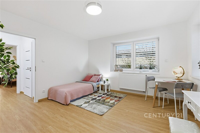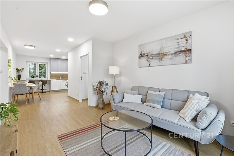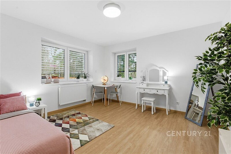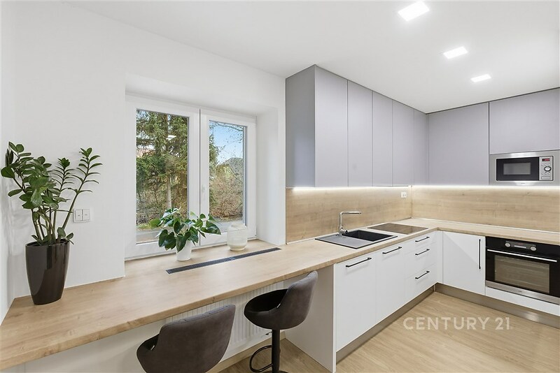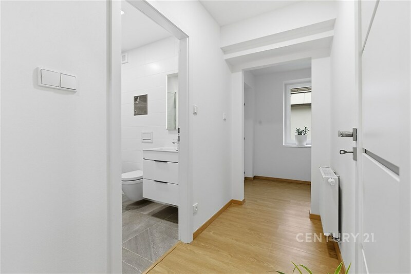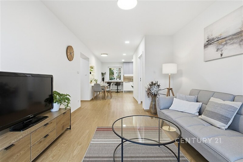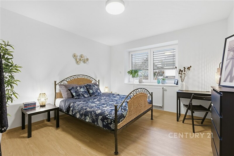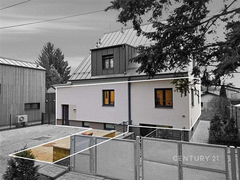 Byt i dům prošli kompletní rekonstrukcí a nabízí moderní technologie – tepelné čerpadlo, předokenní žaluzie, energetickou třídu B. Praktická dispozice: obývací pokoj s kuchyní (33 m²) navazuje na terasu a zahradu, dvě prostorné ložnice, šatna, koupelna s WC a další samostatné WC s prostorem pro pračku a sušičku.